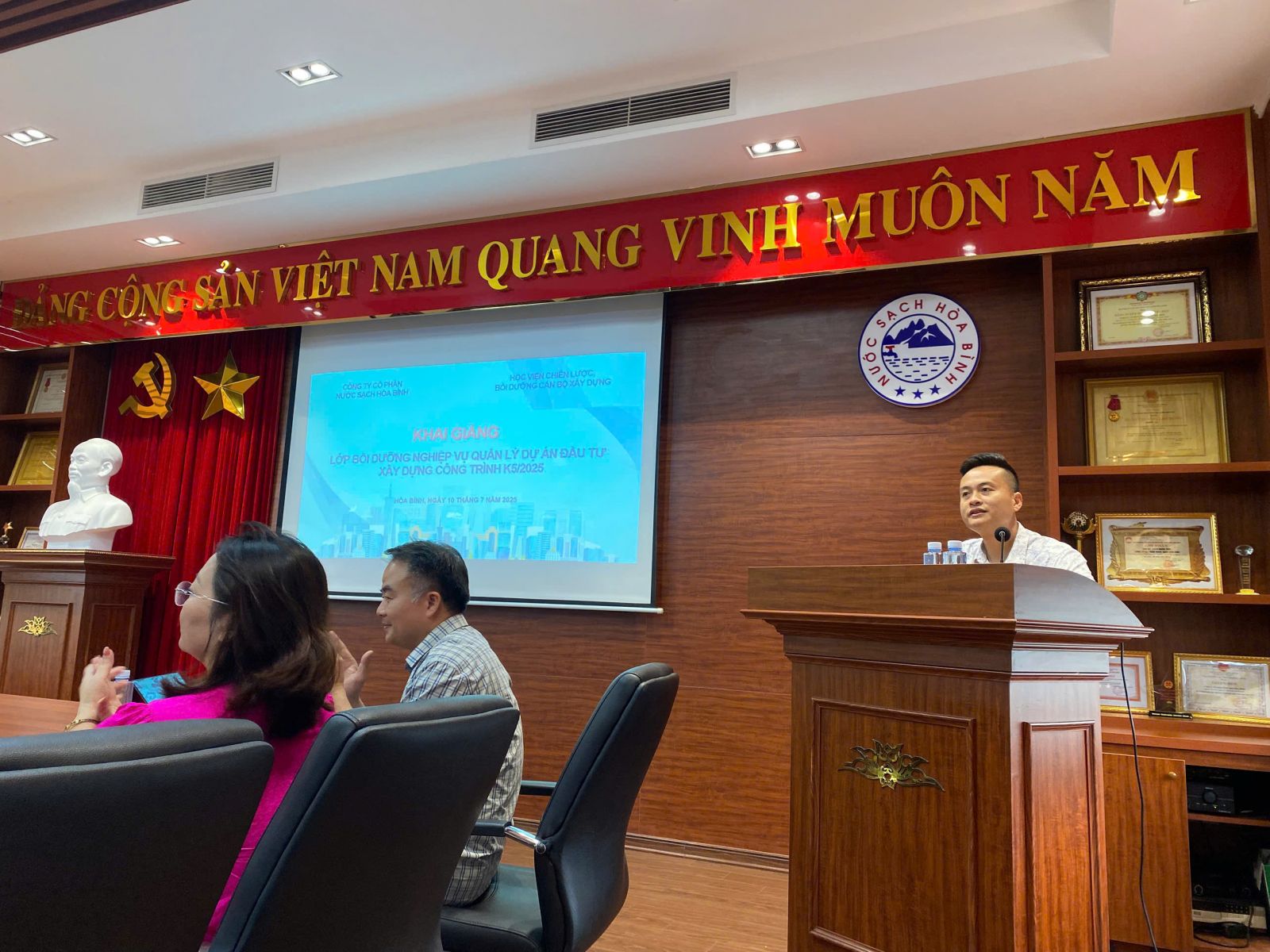 Nhằm nâng cao nghiệp vụ chuyên môn và kỹ năng xử lý công việc cho cán bộ nhân viên về công tác quản lý dự án đầu tư xây dựng, góp phần nâng cao chất lượng, hiệu quả trong công việc tại đơn vị. Ngày 10/7/2025, Học viện Chiến lược, bồi dưỡng cán bộ xây dựng (Học viện/ACST) phối hợp với Công ty Cổ phần Nước sạch Hoà Bình tổ chức khai giáng khóa”Bồi dưỡng nghiệp vụ Quản lý dự án đầu tư xây dựng" cho cán bộ Công ty.