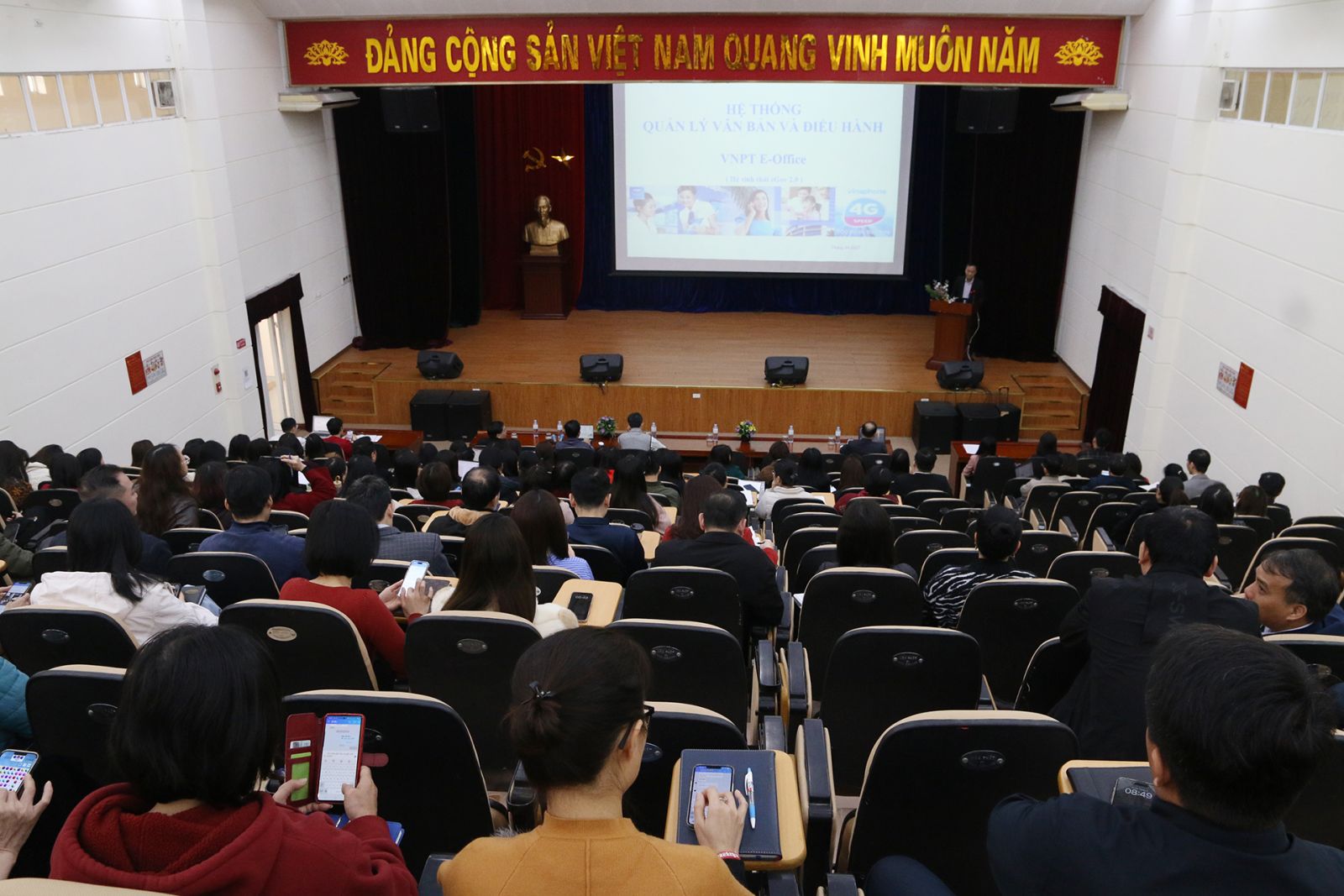Tại buổi tập huấn các báo cáo viên đến từ VNPT Hà Nội giới thiệu tổng thể hệ thống quản lý văn bản và điều hành công việc, quy trình xử lý văn bản; thực hành các thao tác gửi văn bản; nhận thông tin điều hành và quản lý công việc qua hệ thống phần mềm VNPT - ioffice. Đây là hệ thống phần mềm có nhiều ưu điểm như: tiết kiệm thời gian; khả năng bảo mật cao, giúp người sử dụng làm việc mọi lúc, mọi nơi trên Laptop, Ipad, điện thoại thông minh; có thể thông báo văn bản, công việc đến qua tin nhắn, thư điện tử và phù hợp với các quy trình lưu chuyển văn bản khác nhau.