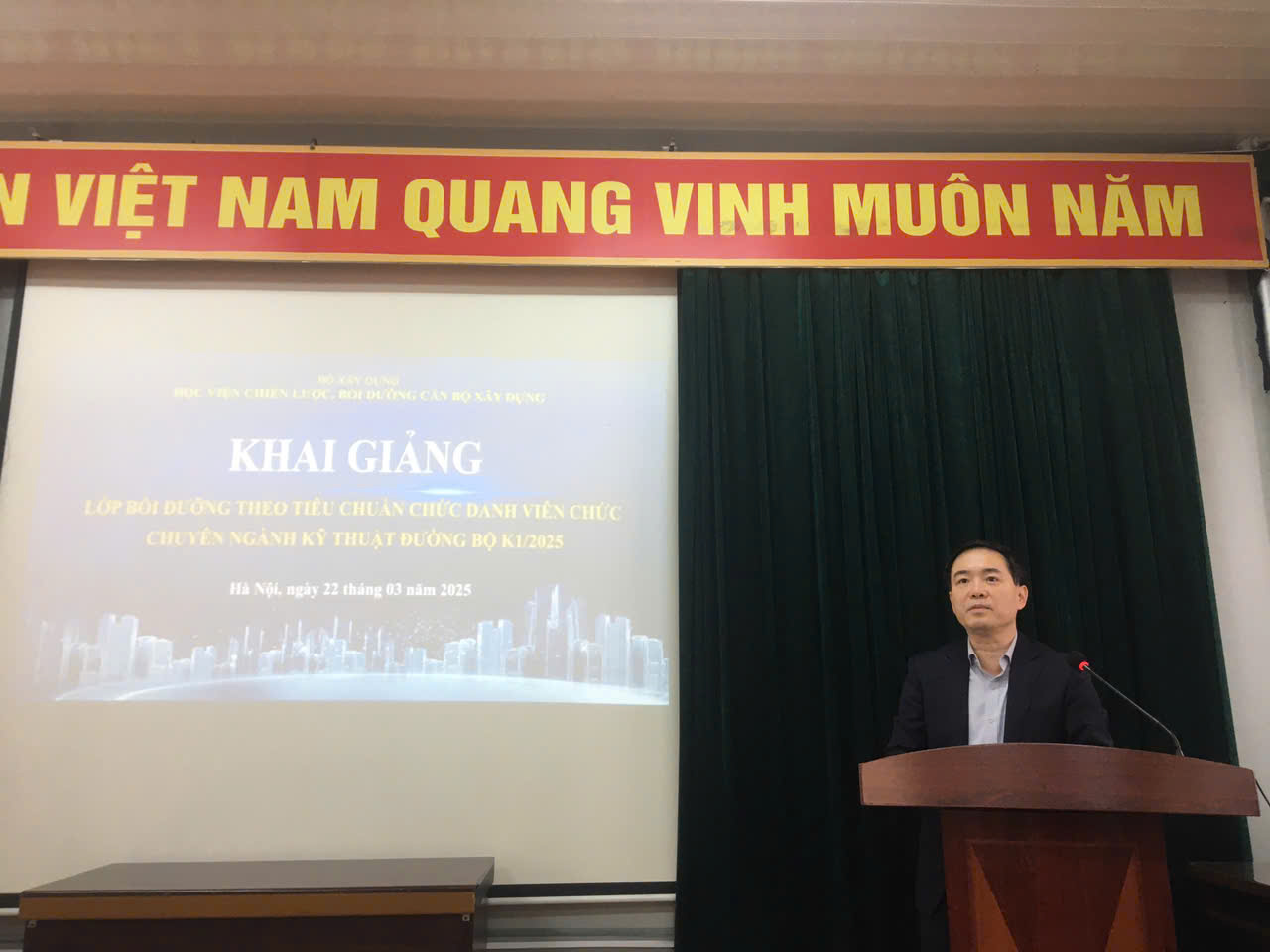 Ngày 22/3/2024 tại Hà Nội, Học viện Chiến lược, bồi dưỡng cán bộ xây dựng (Học viện/ACST) phối hợp với Trung tâm Kỹ thuật đường bộ Hà Nội tổ chức khai giảng lớp Bồi dưỡng theo tiêu chuẩn chức danh nghề nghiệp chuyên ngành kỹ thuật đường bộ.