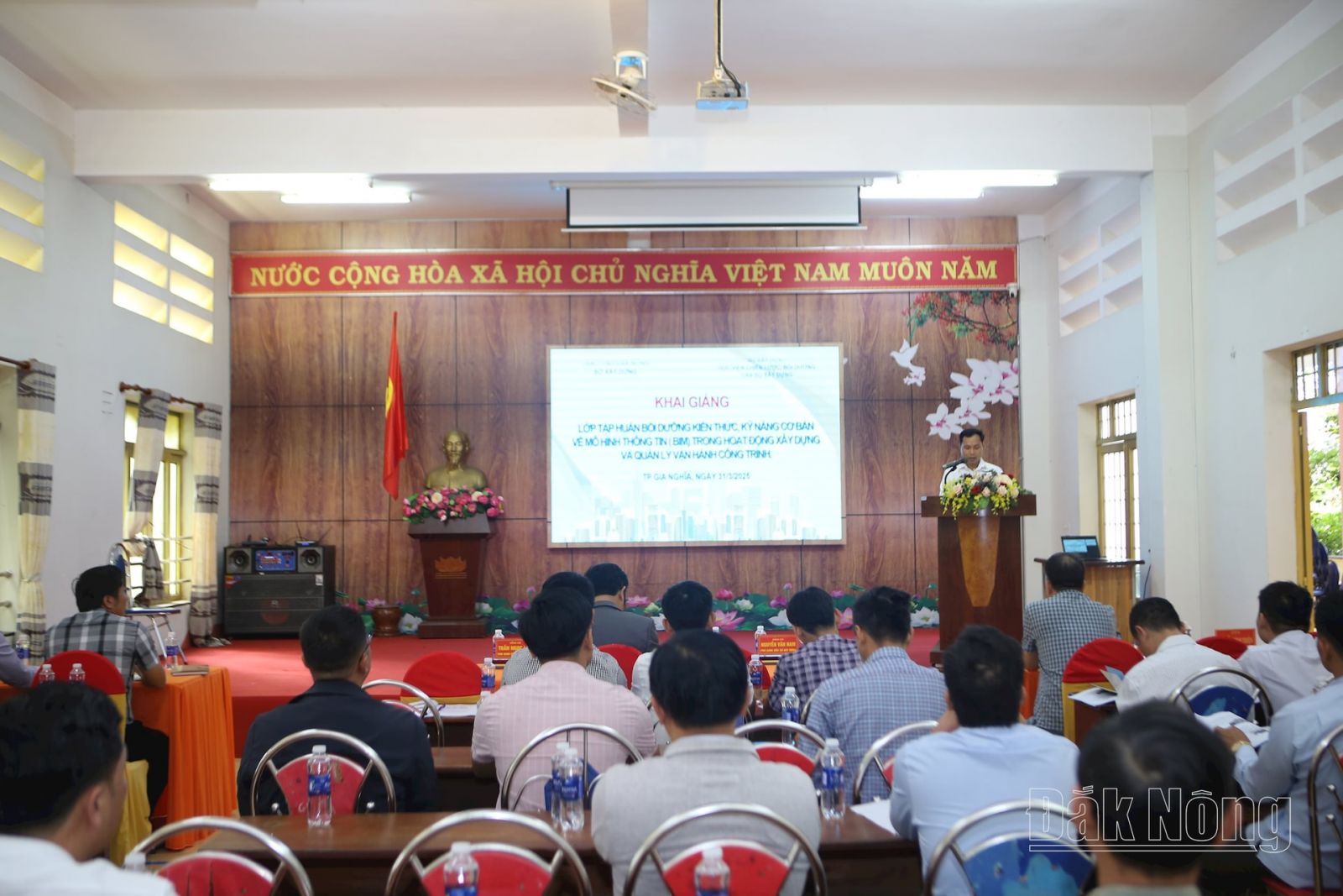 (ACST) Ngày 31/3/2025, Học viện Chiến lược, bồi dưỡng cán bộ xây dựng (Học viện/ACST) - Bộ Xây dựng phối hợp với Sở Xây dựng Đắk Nông tổ chức khai giảng lớp Tập huấn bồi dưỡng kiến thức, kỹ năng cơ bản về mô hình thông tin (Bim) trong hoạt động xây dựng và quản lý vận hành công trình cho 85 học viên.