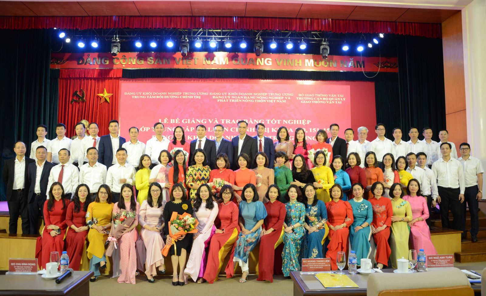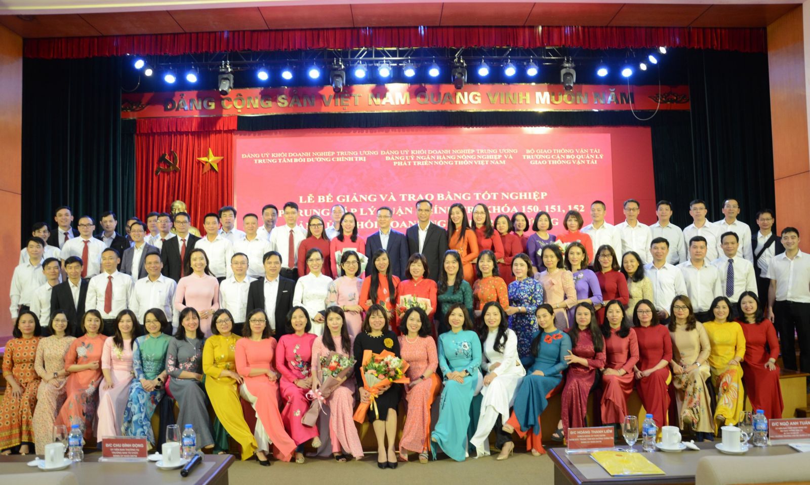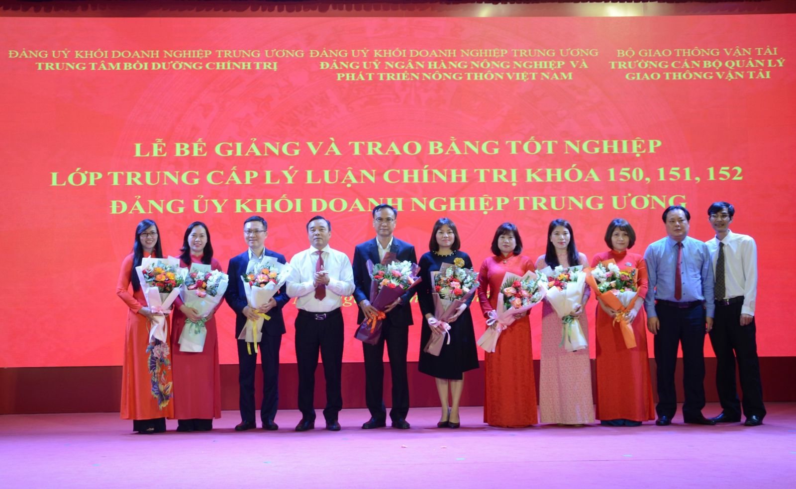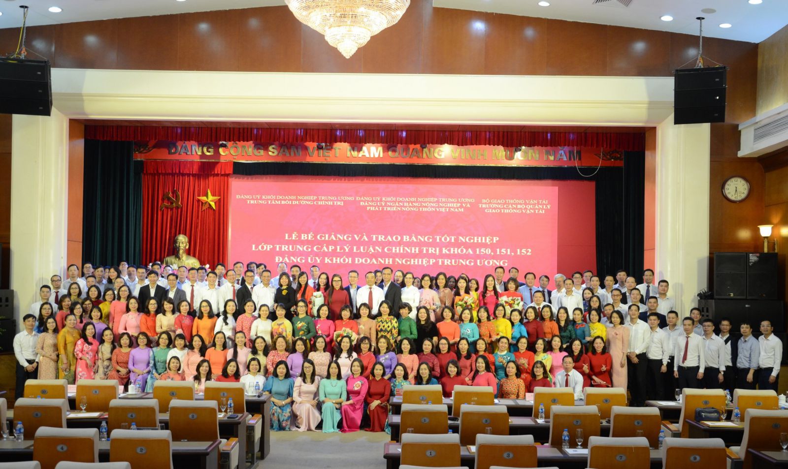 Lớp Trung cấp Lý luận chính trị Đảng ủy khối Doanh nghiệp Trung ương K150, K151, K152 có tổng số 236 học viên là cán bộ chủ chốt của các đơn vị thuộc Agribank và Tổng Công ty lương thực miền Bắc. Sau một thời gian học tập và rèn luyện, các học viên đã được trang bị những kiến thức cơ bản về Chủ nghĩa Mác-Lê nin, tư tưởng Hồ Chí Minh; Lịch sử Đảng và đường lối, chính sách của Đảng, Nhà nước Việt Nam; Xây dựng Đảng và hệ thống chính trị; Quản lý hành chính nhà nước và kỹ năng lãnh đạo, quản lý; Thực tiễn kinh nghiệm xây dựng, phát triển ngành và kiến thức bổ trợ. Kết thúc khóa học có 236/236 học viên được công nhận và cấp bằng tốt nghiệp Trung cấp Lý luận chính trị, trong đó có 24 học viên vinh dự được Hiệu trưởng Trường Cán bộ giao thông vận tải khen thưởng về đạt thành tích cao trong học tập và rèn luyện.