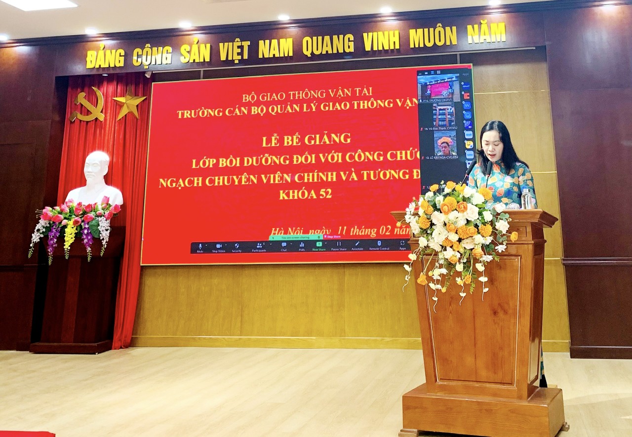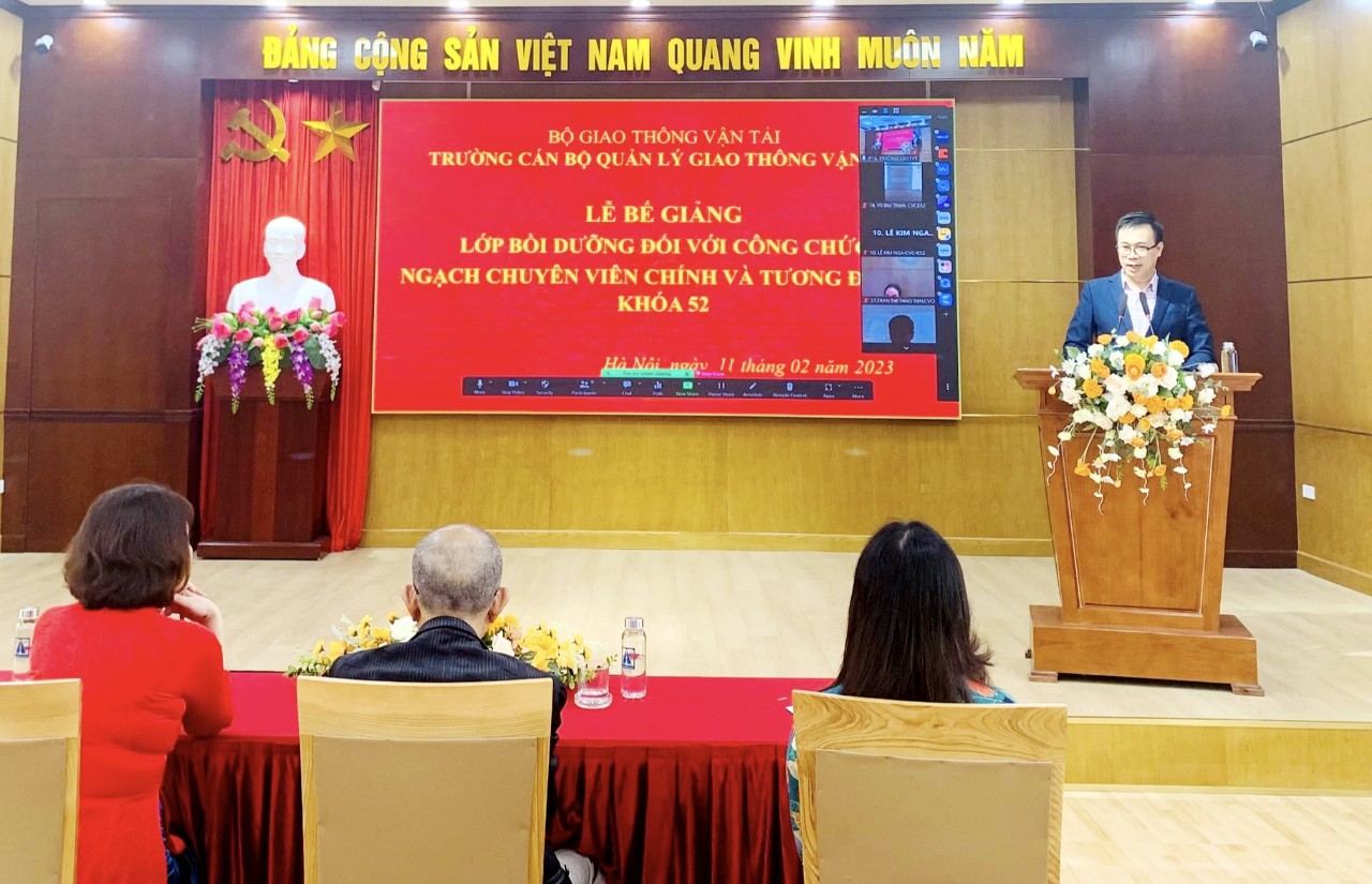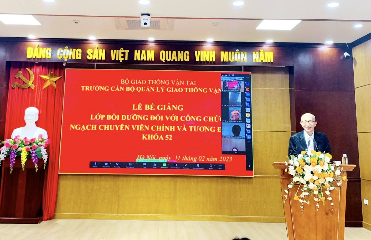 Ngày 11/2/2023, Trường Cán bộ quản lý giao thông vận tải tổ chức bế giảng lớp Bồi dưỡng đối với ngạch chuyên viên chính và tương đương K52 dành cho học viên là công chức, viên chức đang công tác tại các cơ quan, đơn vị trong vàn ngoài ngành Giao thông vận tải.