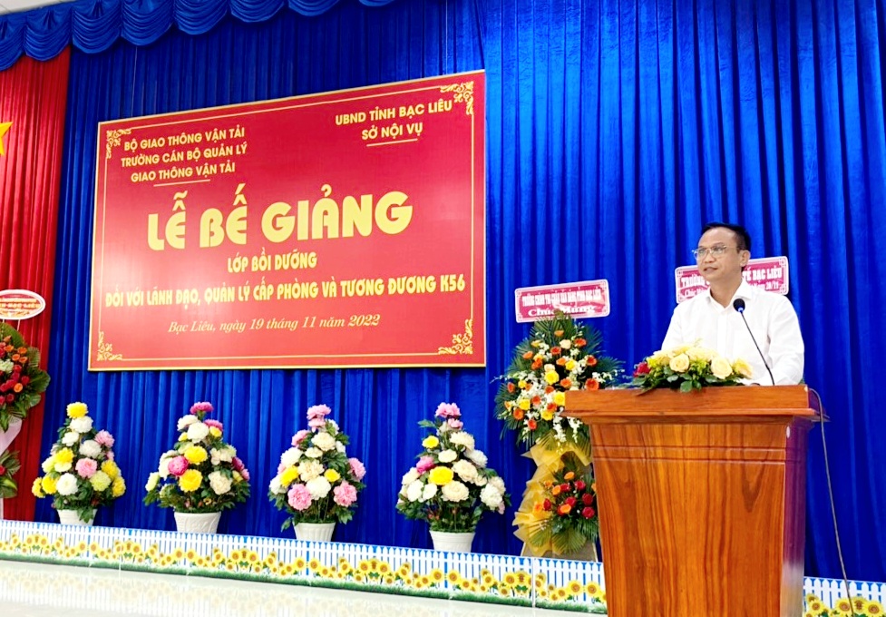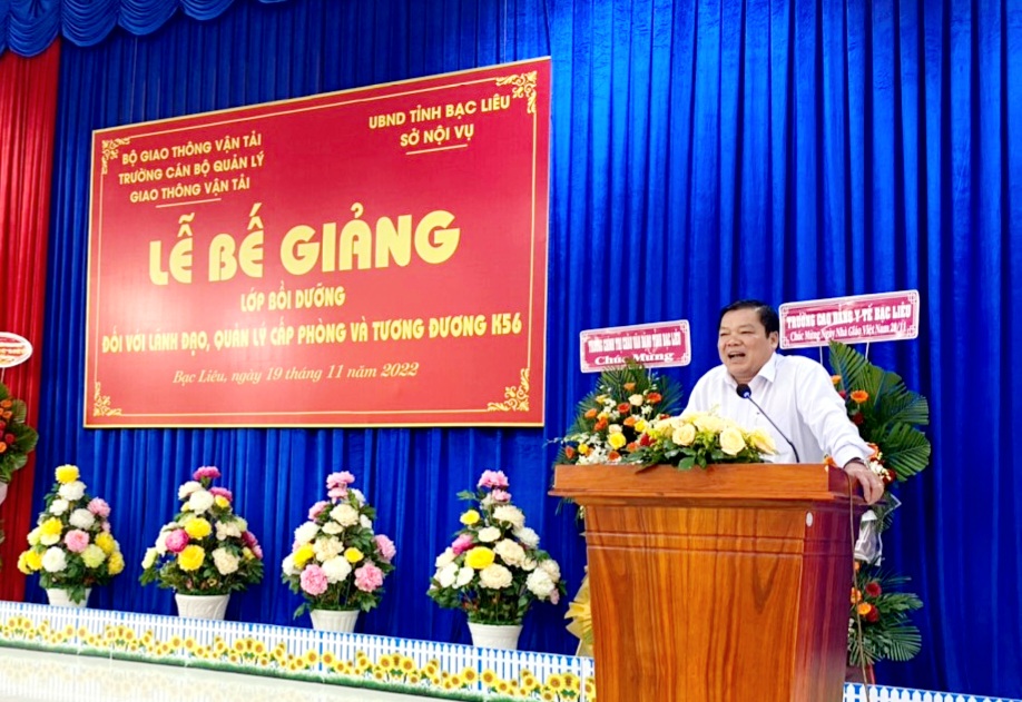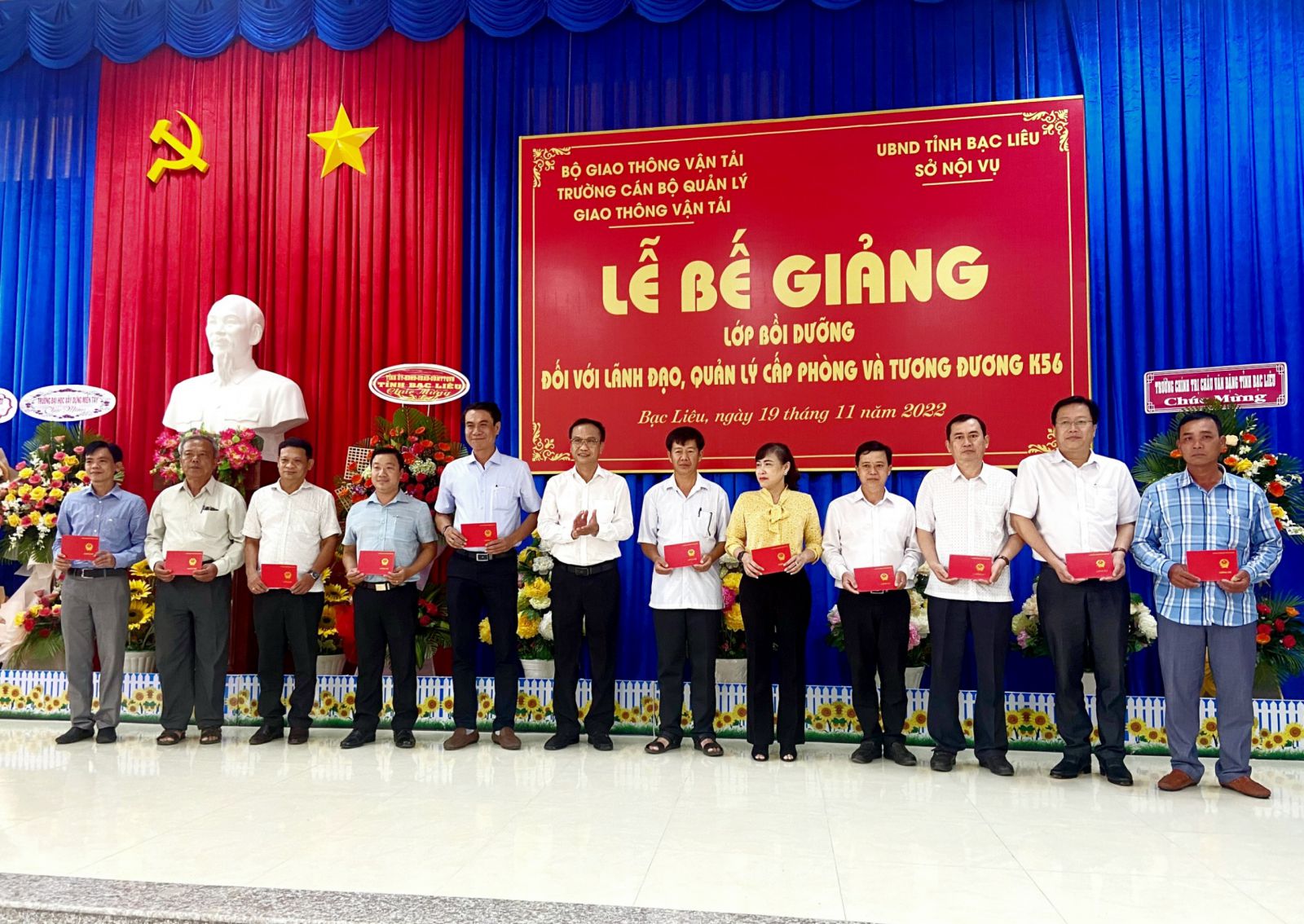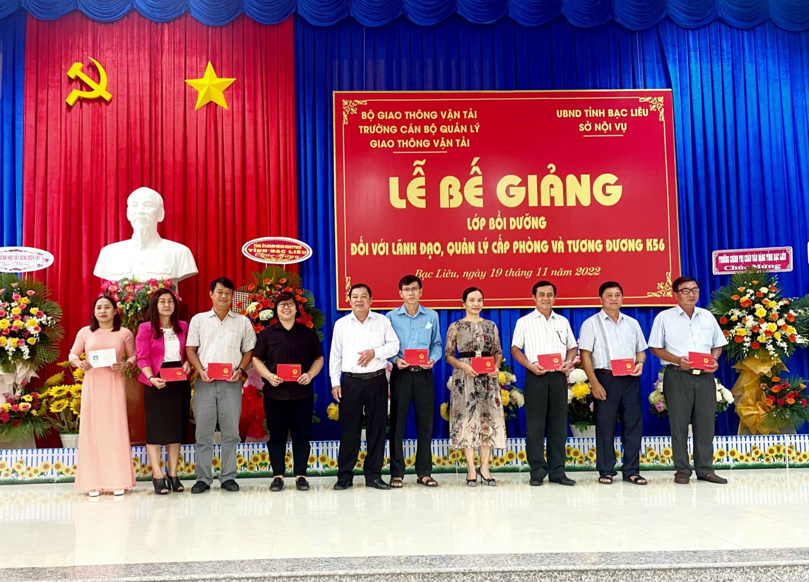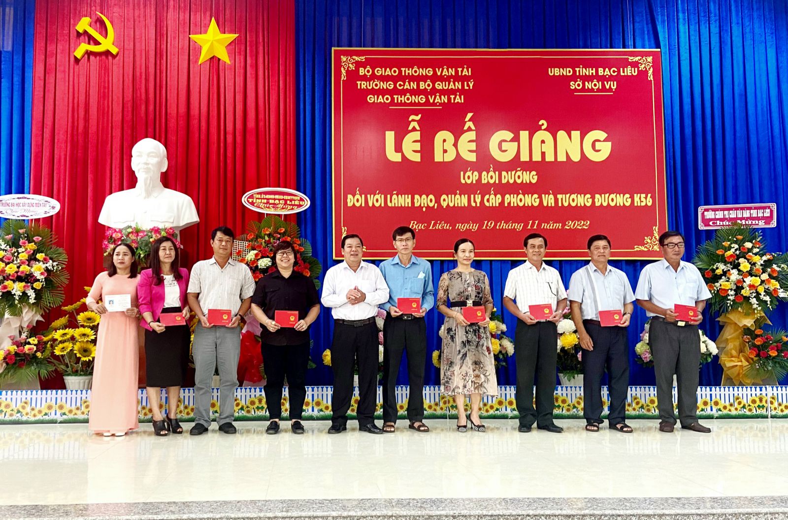 Ngày 19/11/2022, Trường Cán bộ quản lý giao thông vận tải phối hợp với Sở Nội vụ tỉnh Bạc Liêu tổ chức Lễ bế giảng lớp Bồi dưỡng lãnh đạo quản lý cấp phòng và tương đương K56 dành cho học viên là công chức, viên chức đang công tác tại các cơ quan quản lý nhà nước, các đơn vị sự nghiệp công lập trên địa bàn tỉnh Bạc Liêu và các khu vực lân cận.