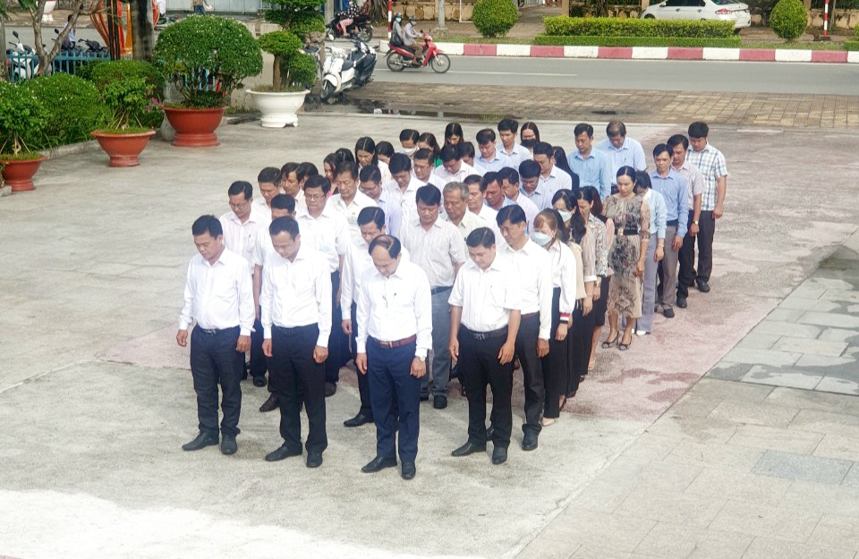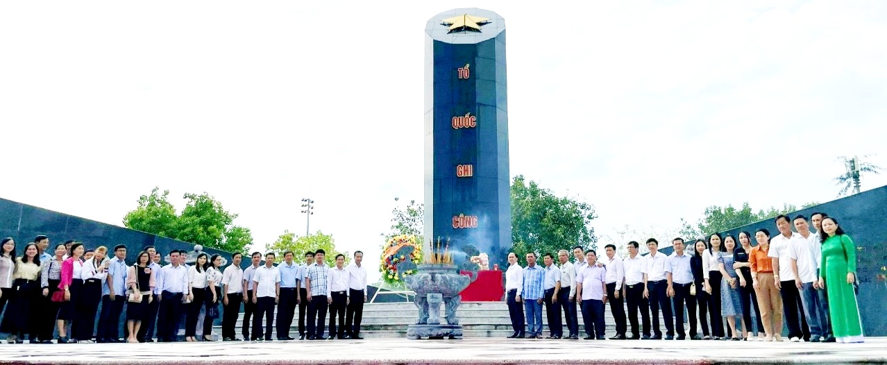 Các đại biểu và các học viên tham dự buổi Lễ dâng hương tại Đài tưởng niệm các Anh hùng Liệt sĩ tỉnh Bạc Liêu. Ảnh Minh Tuấn