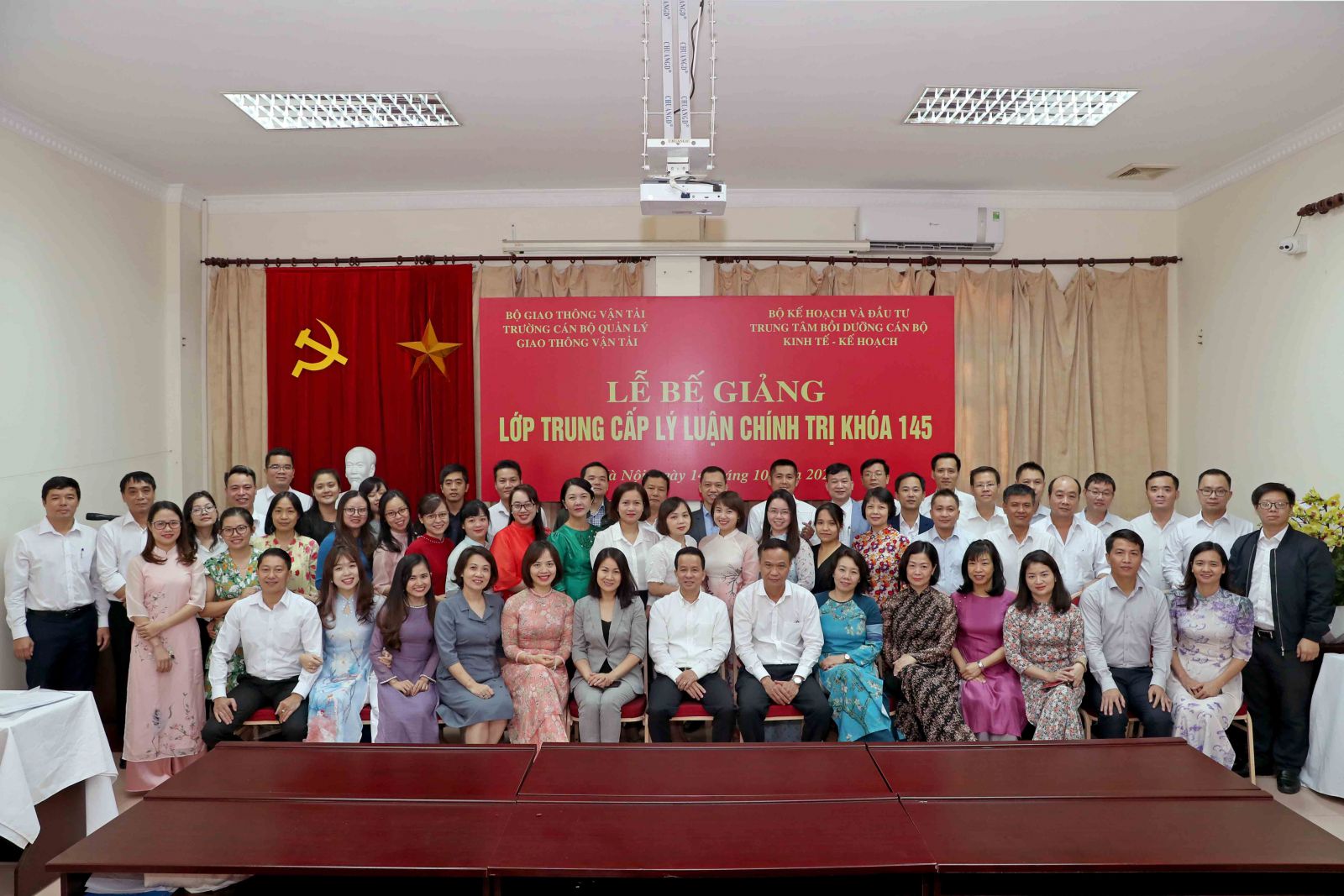 Lớp Trung cấp Lý luận chính trị K145 có 64 học viên là công chức, viên chức đang làm việc tại các cơ quan quản lý nhà nước, đơn vị sự nghiệp công lập thuộc Bộ Kế hoạch và Đầu tư và Văn phòng Chính phủ. Sau một thời gian học tập và rèn luyện, các học viên đã được trang bị những kiến thức cơ bản về Chủ nghĩa Mác-Lê nin, tư tưởng Hồ Chí Minh; Lịch sử Đảng và đường lối, chính sách của Đảng, Nhà nước Việt Nam; Xây dựng Đảng và hệ thống chính trị; Quản lý hành chính nhà nước và kỹ năng lãnh đạo, quản lý; Thực tiễn kinh nghiệm xây dựng, phát triển ngành và kiến thức bổ trợ. Kết thúc khóa học có 64/64 học viên được công nhận và cấp bằng tốt nghiệp Trung cấp Lý luận chính trị, trong đó có 06 học viên vinh dự được Hiệu trưởng Trường Cán bộ giao thông vận tải khen thưởng về đạt thành tích cao trong học tập và rèn luyện.