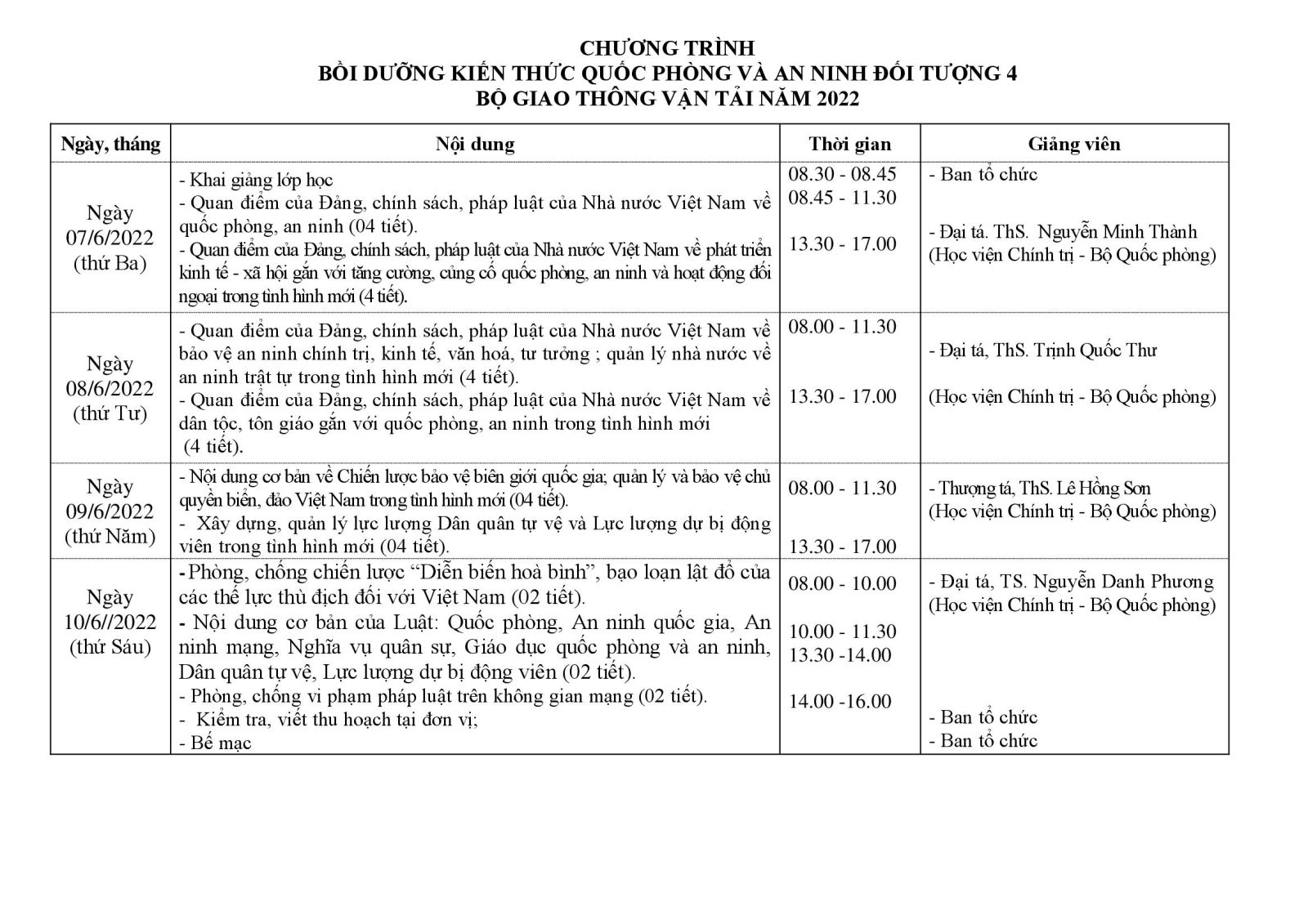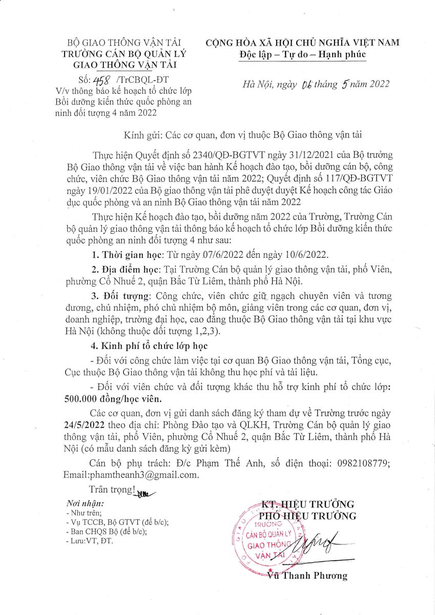 Thông báo đăng kí khóa bồi dưỡng quốc phòng và an ninh đối tượng 4