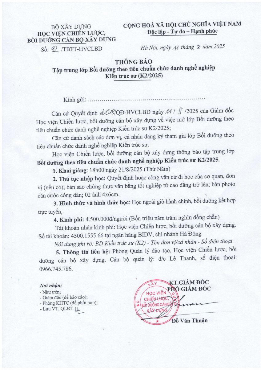 Bồi dưỡng theo tiêu chuẩn chức danh nghề nghiệp Kiến trúc sư K2-2025 21/08/2025 Lượt truy cập : 453 Bình luận : 0 Chia sẻ : Thêm bình luận mới Bình luận của bạn đã được gửi thành công. Cảm ơn bạn! Làm mới Lỗi. Vui lòng thử lại Gửi bình luận