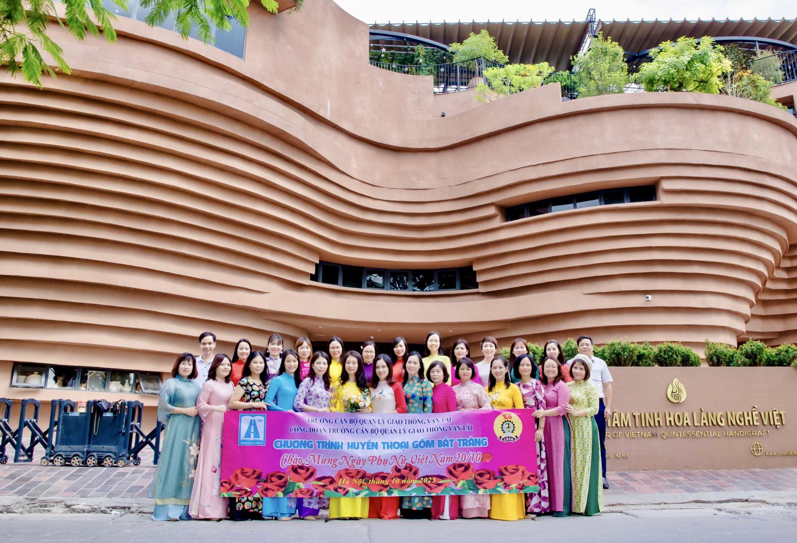 Bằng sự lao động và sáng tạo của mình, phụ nữ đã góp phần làm giàu cho xã hội, làm phong phú cuộc sống và luôn thể hiện vai trò không thể thiếu của mình trong các lĩnh vực đời sống xã hội. Vai trò của phụ nữ Việt Nam hoàn toàn xứng đáng với tám chữ vàng mà Đảng, nhà nước và nhân dân ta dành tặng: Anh hùng, bất khuất, trung hậu, đảm đang. Hòa chung trong không khí vui tươi của cả nước chào mừng kỷ niệm 93 năm ngày thành lập Hội liên hiệp Phụ nữ Việt Nam (20/10/1930 - 20/10/2023), công đoàn Trường Cán bộ quản lý giao thông vận tải đã tổ chức chuyến tham quan, dã ngoại tại làng nghề Gốm Bát Tràng cho nữ đoàn viên của Trường.