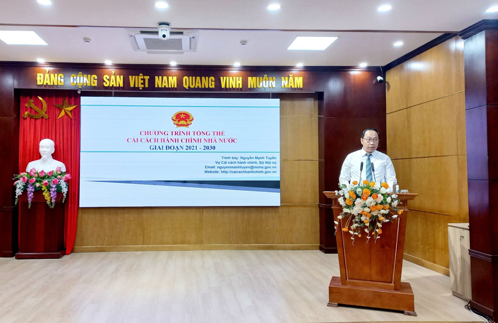Trong khuôn khổ cuộc thi, chuyên gia Nguyễn Mạnh Tuyền, Vụ CCHC (Bộ Nội vụ) đã trình bày khái quát về Chương trình tổng thể CCHC nhà nước giai đoạn 2021-2030; báo cáo đề dẫn về công tác CCHC và thực tiễn tại Bộ GTVT.