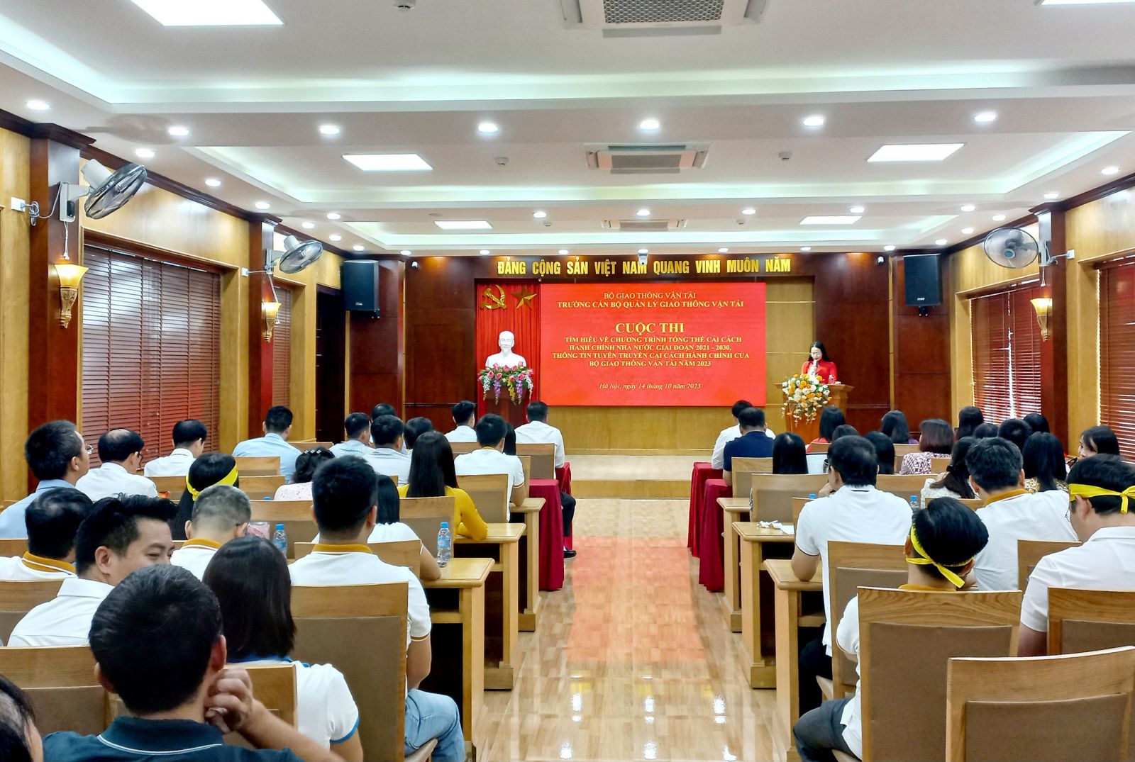 Ngày 14/10/2023, Trường Cán bộ quản lý Giao thông vận tải (GTVT) tổ chức cuộc thi tìm hiểu về Chương trình tổng thể cải cách hành chính (CCHC) nhà nước giai đoạn 2021-2030, thông tin tuyên truyền CCHC của Bộ GTVT năm 2023.