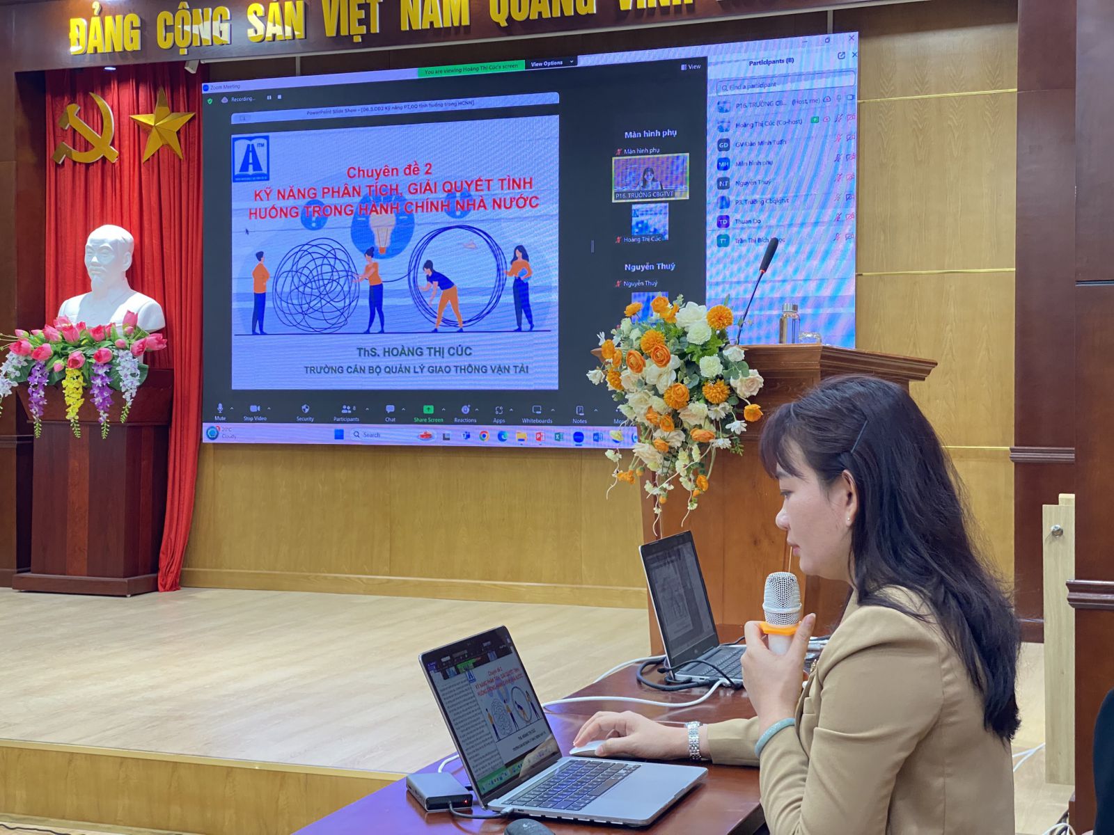 Chuyên đề 2: Kỹ năng phân tích, giải quyết tình huống trong hành chính nhà nước, chương trình Chuyên viên, giảng viên đ/c Hoàng Thị Cúc, Khoa Khoa Cơ bản & Lý luận chính trị.