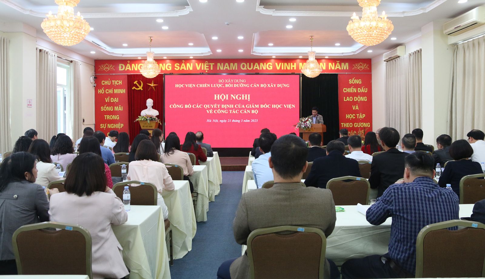 Ngày 21/3/2025, Học viện Chiến lược, bồi dưỡng cán bộ xây dựng – Bộ Xây dựng (Học viện/ Học viện ACST) tổ chức Hội nghị Công bố các Quyết định của Giám đốc Học viện về công tác cán bộ.