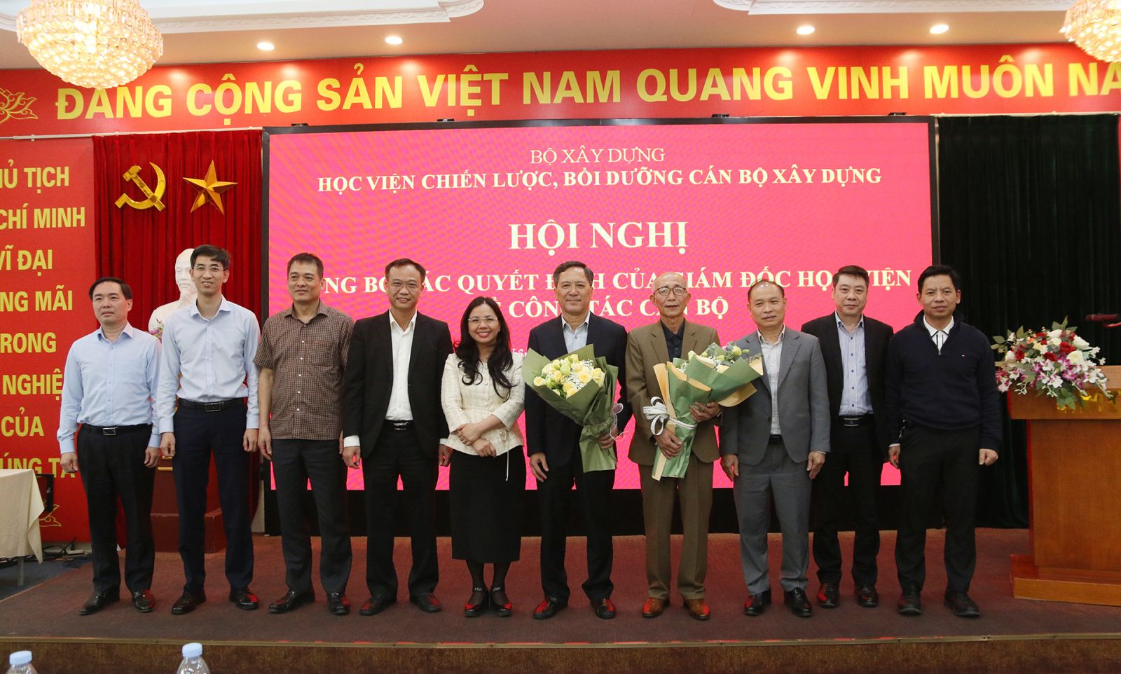 Ban Giám đốc Học viện Chiến lược, bồi dưỡng cán bộ xây dựng chụp ảnh lưu niệm cùng cán bộ các đơn vị được bổ nhiệm