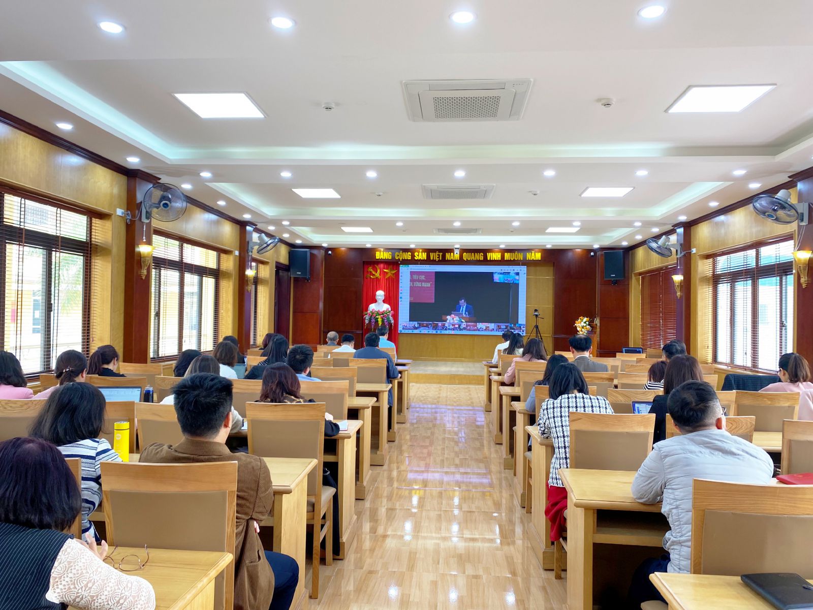 Chiều 28/02/2023, Đảng ủy Trường Cán bộ quản lý giao thông vận tải tổ chức kết nối trực tuyến với điểm cầu chính của Đảng ủy Bộ Giao thông vận tải. Tham dự Hội nghị có đồng chí Ngô Anh Tuấn, Bí thư Đảng ủy, Hiệu trưởng Nhà trường; các đồng chí Phó Hiệu trưởng, cùng toàn thể Đảng viên, viên chức Trường.