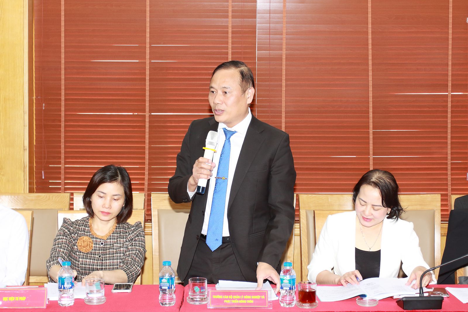 Đồng chí Nguyễn Quốc Oánh, Hiệu trưởng Trường Cán bộ Nông nghiệp và phát triển nông thôn phát biểu.