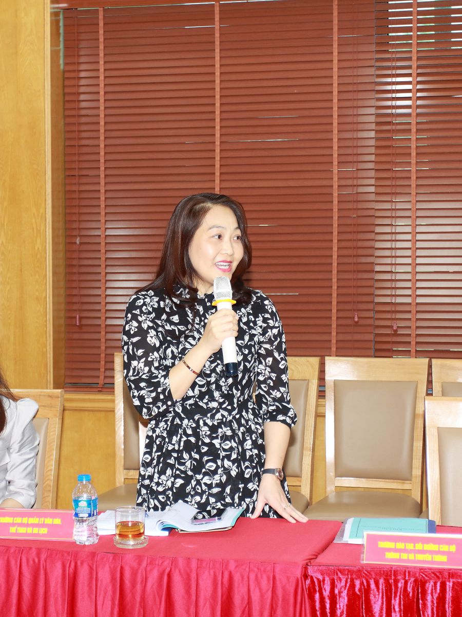 Đồng chí Nguyễn Thanh Thủy, Phó Hiệu trưởng Trường Cán bộ Văn hóa, Thể thao và Du lịch phát biểu tham luận
