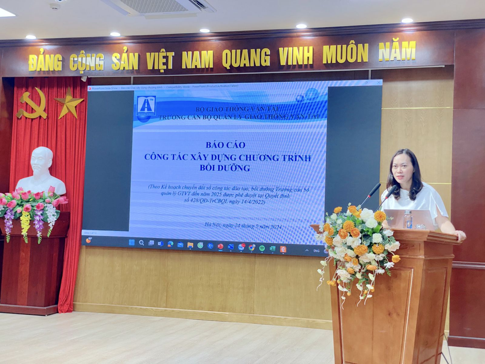 Nhằm nâng cao chất lượng bồi dưỡng công chức, viên chức để đáp ứng nhu cầu ngày càng cao của xã hội, thực hiện chỉ đạo của Lãnh đạo Trường, sáng ngày 24/5/2024 Hội đồng giảng viên Trường Cán bộ quản lý giao thông vận tải đã tổ chức Hội thảo đánh giá kết quả thực hiện chuyển đổi số và xây dựng chương trình thích ứng.