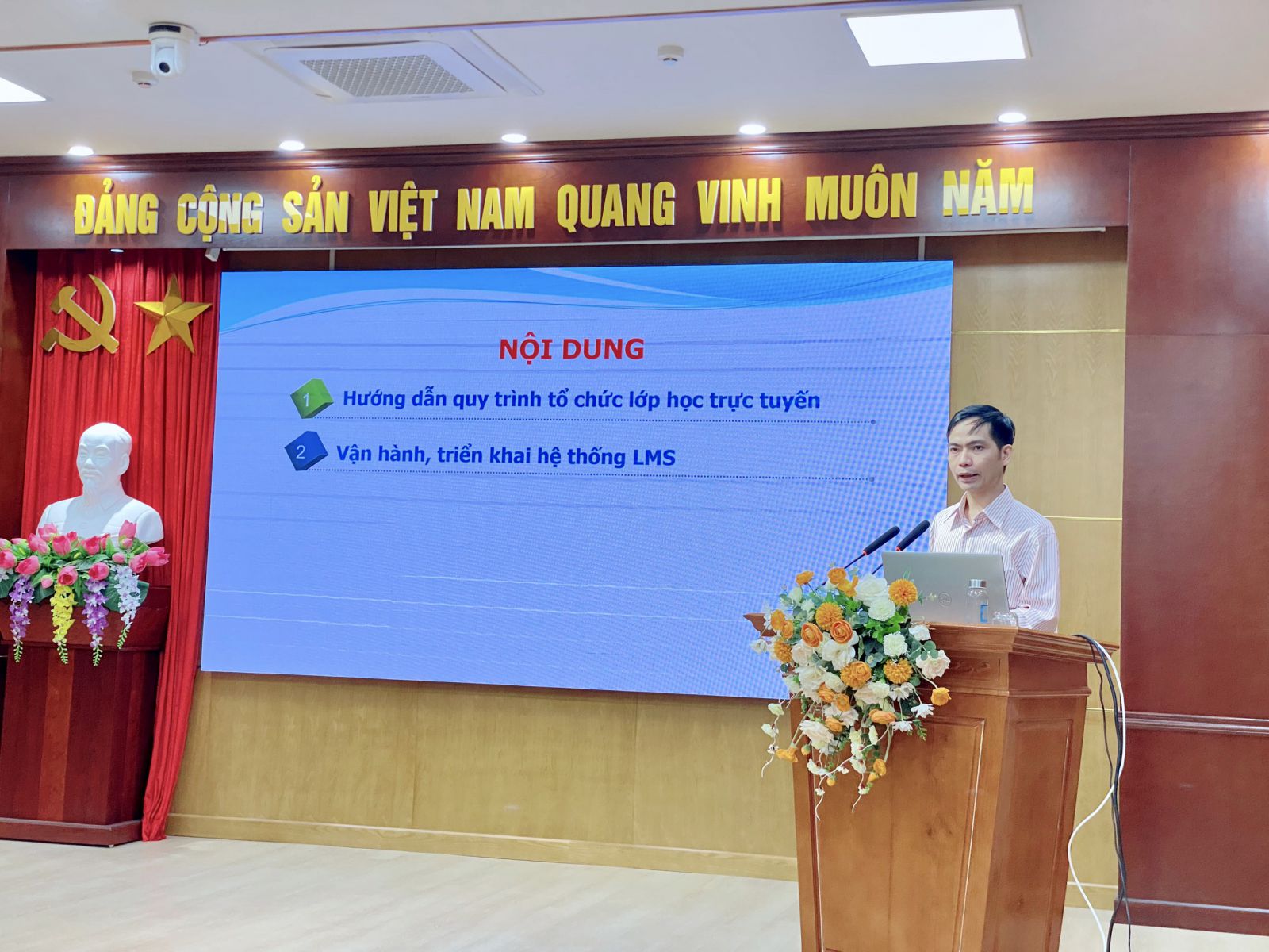 Hướng dẫn quy trình tổ chức lớp học trực tuyến và vận hành, triển khai hệ thống LMS, Người hướng dẫn đ/c Trần Văn Ước, giảng viên Khoa Cơ bản & Lý luận chính trị