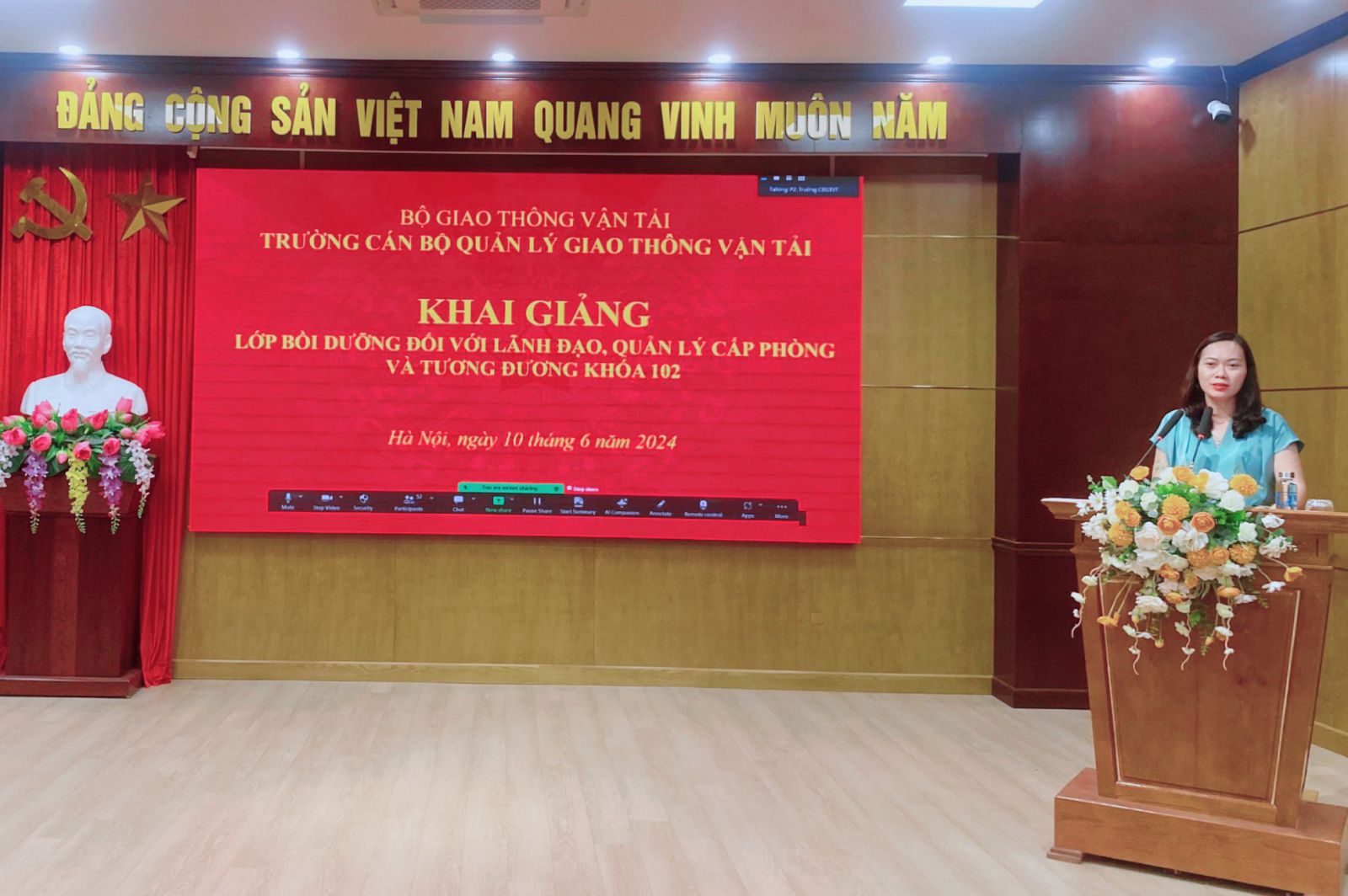 Ngày 10/6/2024, tại Trường Cán bộ quản lý giao thông vận tải đã tổ chức Khai giảng trực tuyến lớp Bồi dưỡng đối với lãnh đạo, quản lý cấp phòng và tương đương Khóa 102.