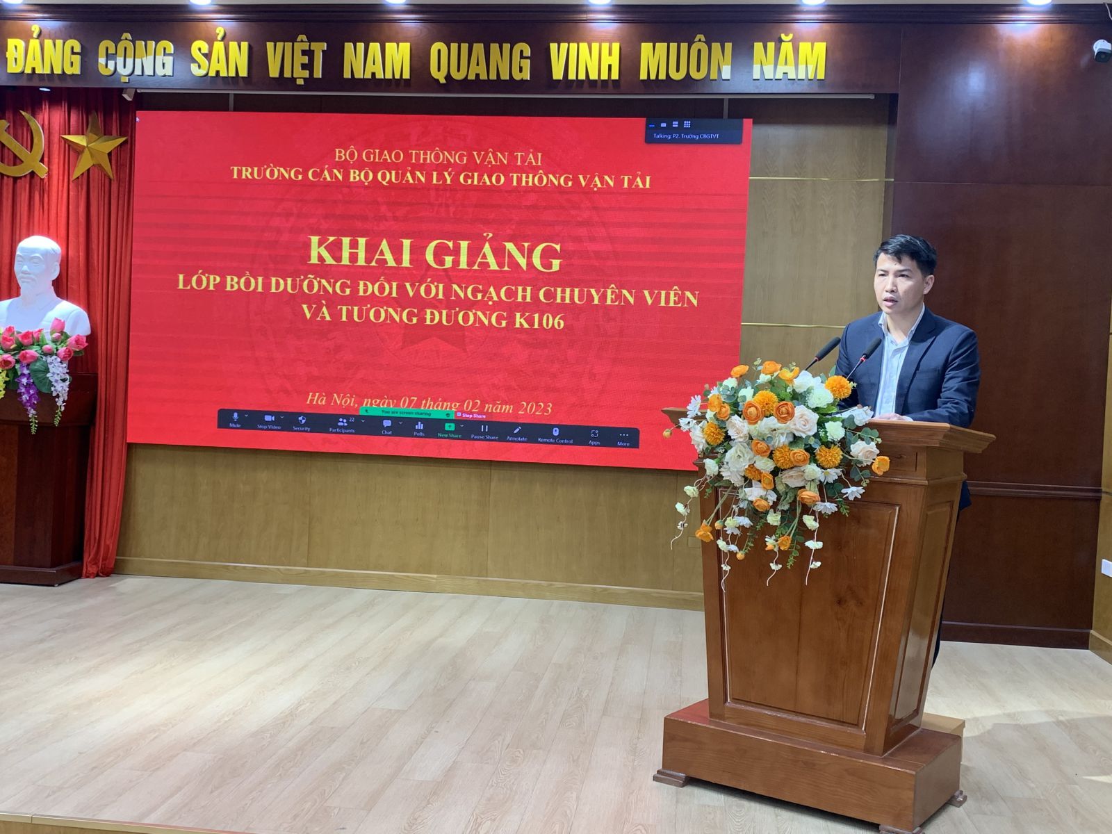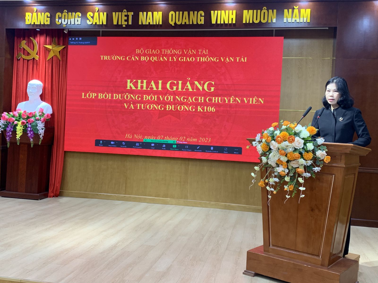 Ngày 07 tháng 02 năm 2023, Trường Cán bộ quản lý giao thông vận tải tổ chức khai giảng lớp Bồi dưỡng đối với ngạch chuyên viên và tương đương K106. Tham dự khóa học có các học viên là công chức, viên chức đang công tác tại các cơ quan đơn vị thuộc Bộ Giao thông vận tải.