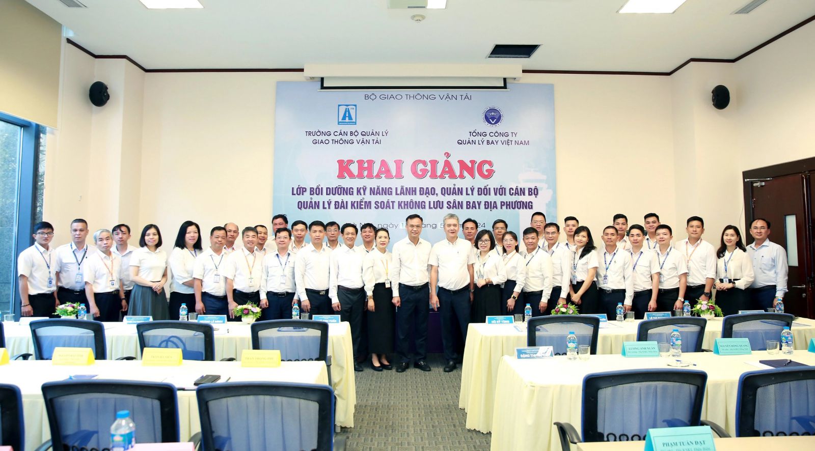 Sáng 13/5/2024, Trường Cán bộ quản lý giao thông vận tải phối hợp với Tổng công ty Quản lý bay Việt Nam (VATM) tổ chức khai giảng khóa 2 lớp Bồi dưỡng kỹ năng lãnh đạo, quản lý cho cán bộ quản lý các Đài Kiểm soát không lưu sân bay địa phương thuộc VATM tại Trung tâm Đào tạo - Huấn luyện nghiệp vụ Quản lý bay.