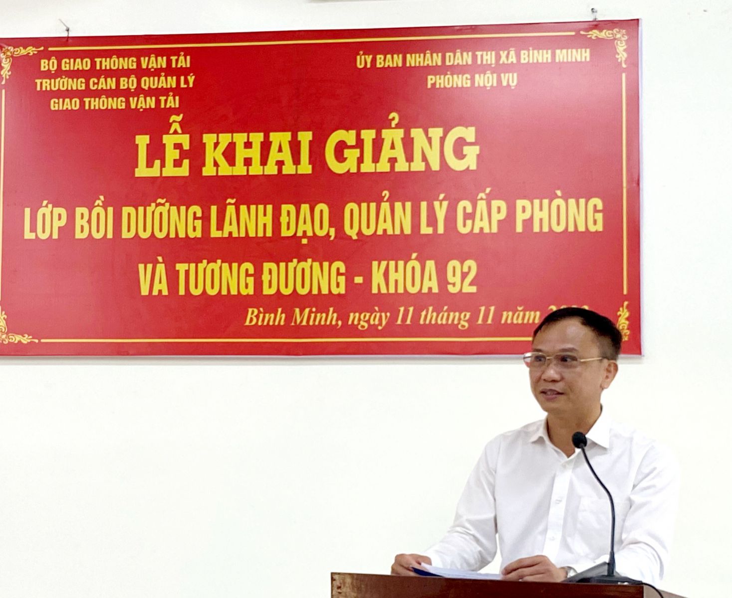 Ngày 09 tháng 11 năm 2023, Trường Cán bộ quản lý giao thông vận tải phối hợp với Phòng Nội vụ thị xã Bình Minh, tỉnh Vĩnh Long tổ chức khai giảng lớp Bồi dưỡng lãnh đạo, quản lý cấp phòng và tương đương K92. Tham dự khóa học có các học viên là công chức, viên chức đang công tác tại các cơ quan quản lý nhà nước, các đơn vị sự nghiệp công lập trên địa bàn thị xã Bình Minh, tỉnh Vĩnh Long.
