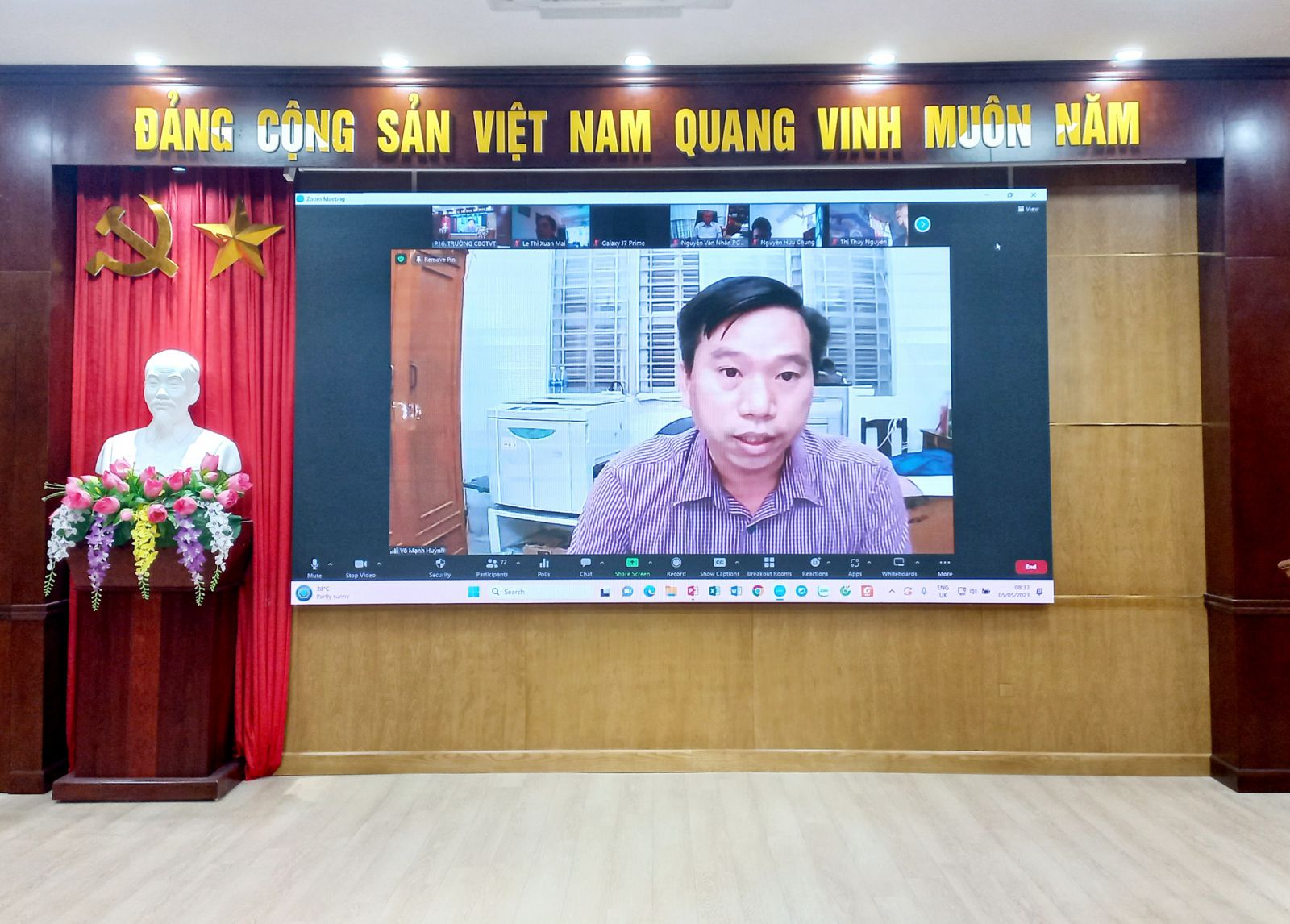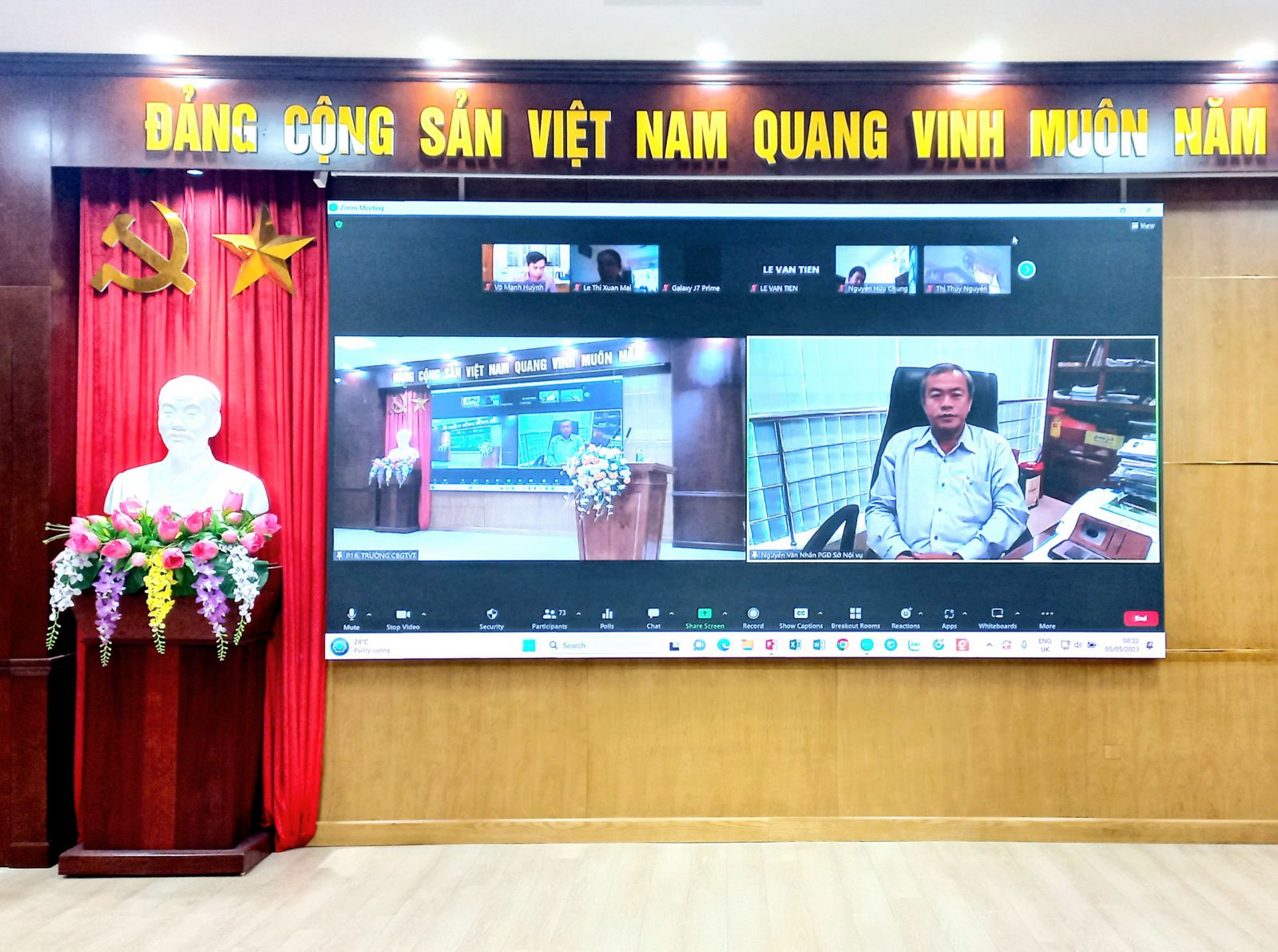 Ông Nguyễn Văn Nhân, Phó Giám đốc sở Nội vụ tỉnh Bến Tre phát biểu tại buổi khai giảng qua hệ thống phần mềm hôi nghị, học tập trực tuyến Zooom
