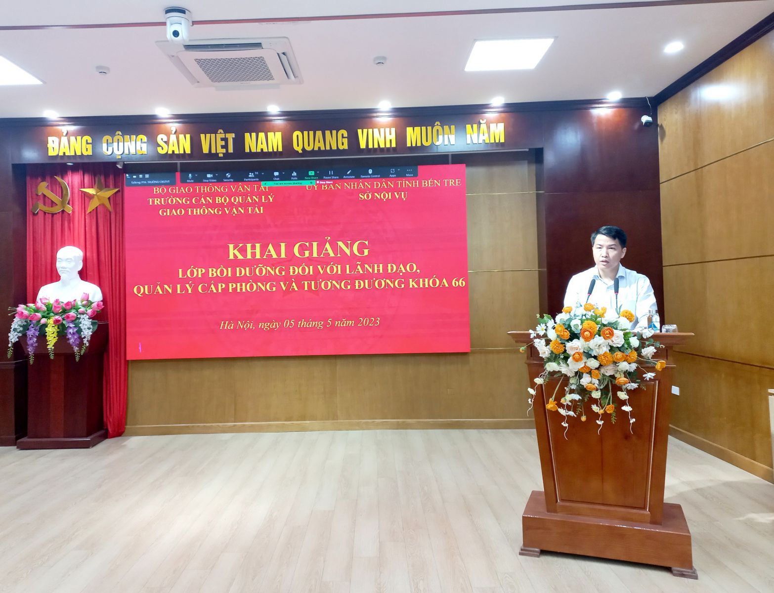 Ngày 05 tháng 5 năm 2023, Trường Cán bộ quản lý giao thông vận tải phối hợp với Sở Nội vụ tỉnh Bến Tre tổ chức khai giảng lớp Bồi dưỡng lãnh đạo, quản lý cấp phòng và tương đương K66. Tham dự khóa học có các học viên là viên chức giáo dục, hiệu trưởng, phó hiệu trưởng các trường phổ thông trung học (dự nguồn lãnh đạo, quản lý cấp phòng và ương đương) thuộc tỉnh Bến Tre.