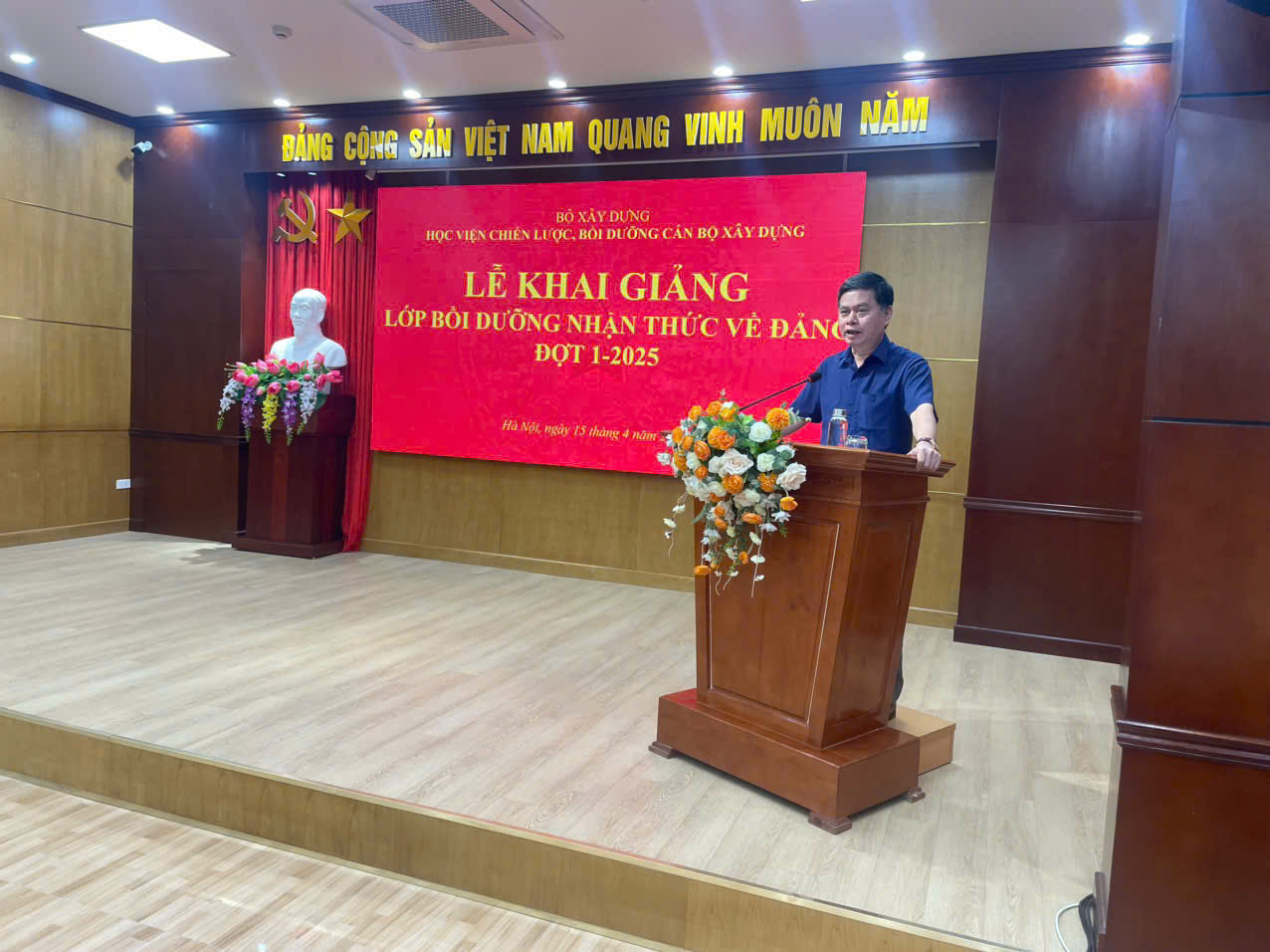 Sáng ngày 15/4/2025, Học viện Chiến lược, bồi dưỡng cán bộ xây dựng tổ chức khai giảng lớp Bồi dưỡng nhận thức về Đảng đợt 1 năm 2025. Về dự có đồng chí Đoàn Huy Khương, Uỷ viên BCH Đảng bộ Bộ, Phó Trưởng ban Thường trực Ban Tổ chức Đảng uỷ Bộ Xây dựng; đại diện lãnh đạo Học viện và các giảng viên.