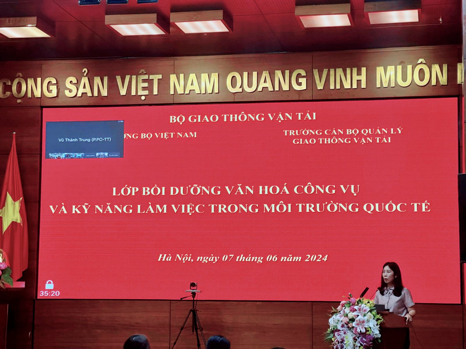 Sáng ngày 7/6/2024, tại Trường Cán bộ quản lý giao thông vận tải kết hợp với Tổng cục Đường bộ Việt Nam đã tổ chức Lớp Bồi dưỡng Văn hóa công vụ và kỹ năng làm việc trong môi trường quốc tế theo hình thức bồi dưỡng kết hợp trực tuyến cho công chức các cơ quan, đơn vị hành chính của Cục Đường bộ Việt Nam.