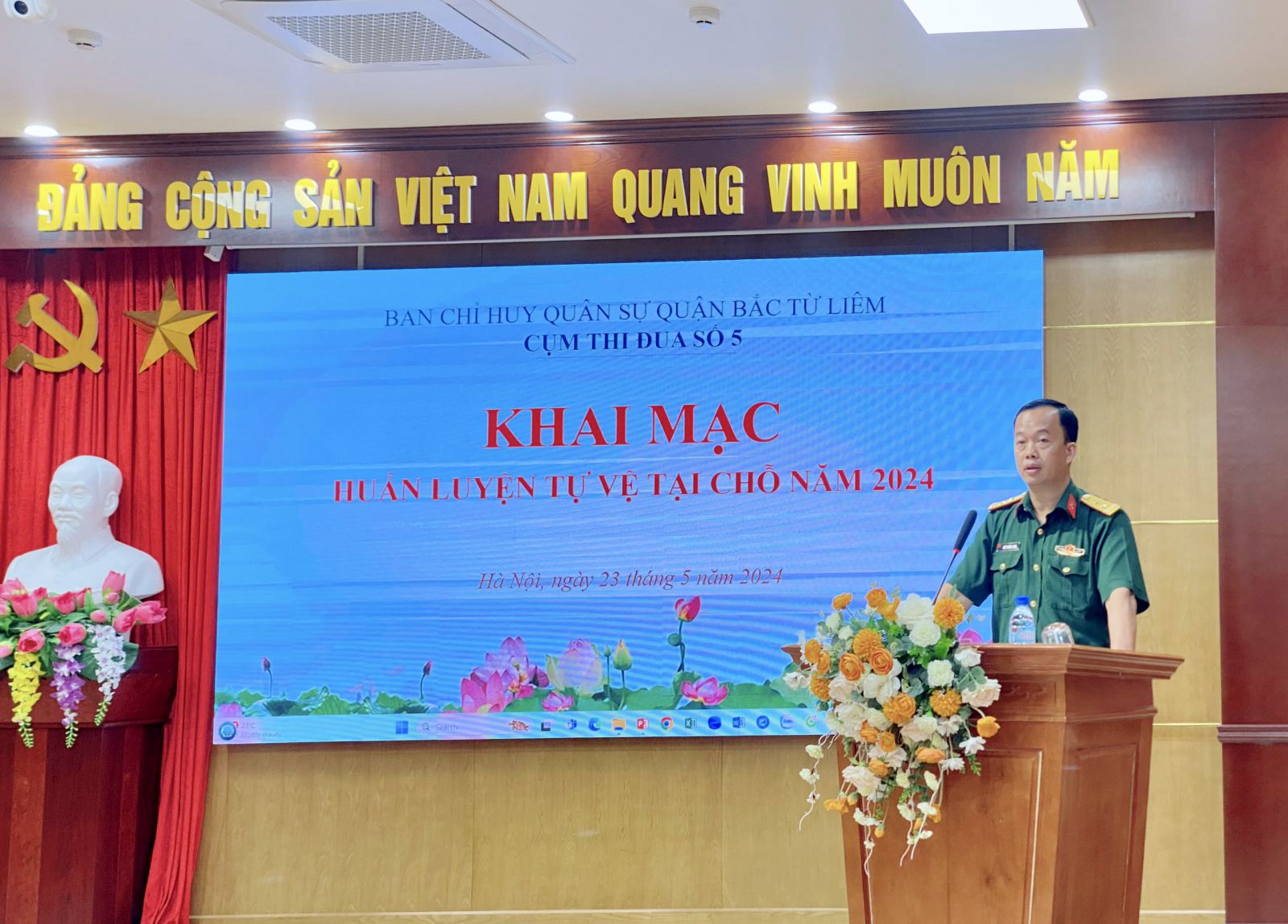 Sáng ngày 23/5/2024 tại Trường Cán bộ quản lý giao thông vận tải, Ban CHQS Quận Bắc Từ Liêm phối hợp với Trường Cán bộ quản lý giao thông vận tải Khai mạc huấn luyện tự vệ tại chỗ cụm thi đua số 5 năm 2024.