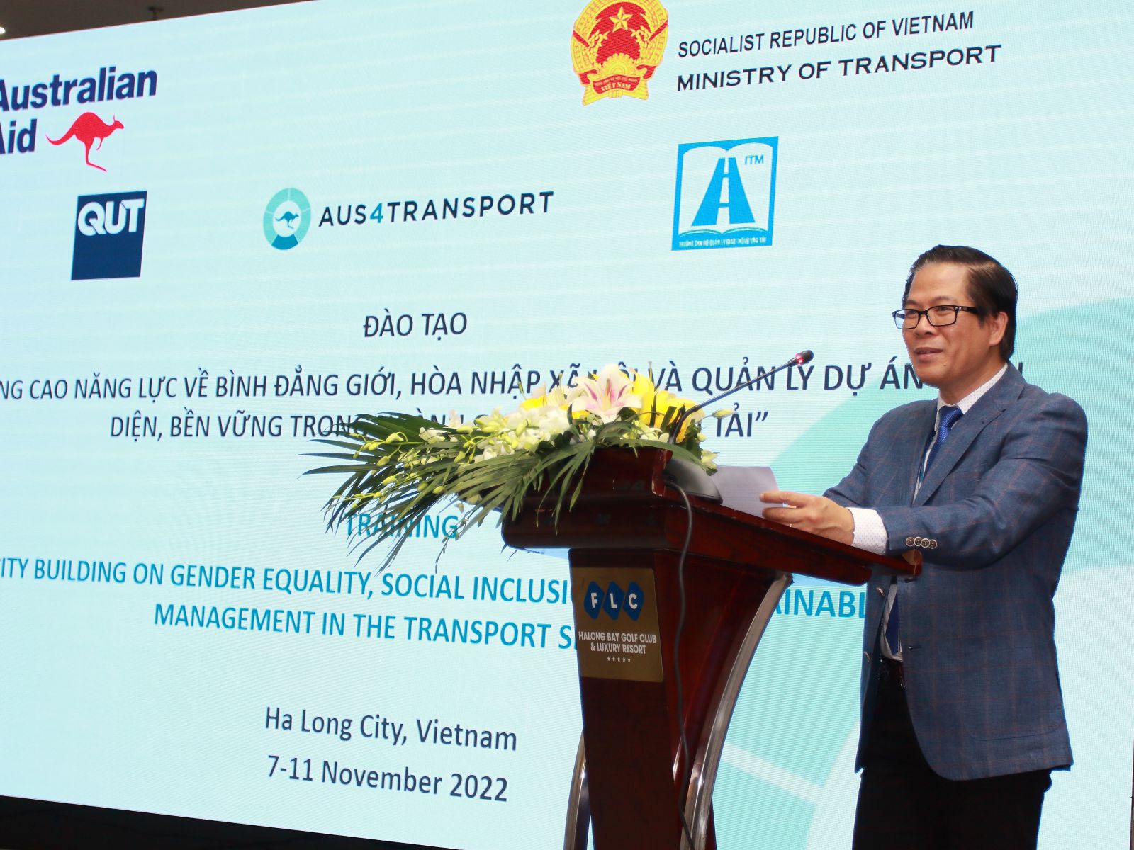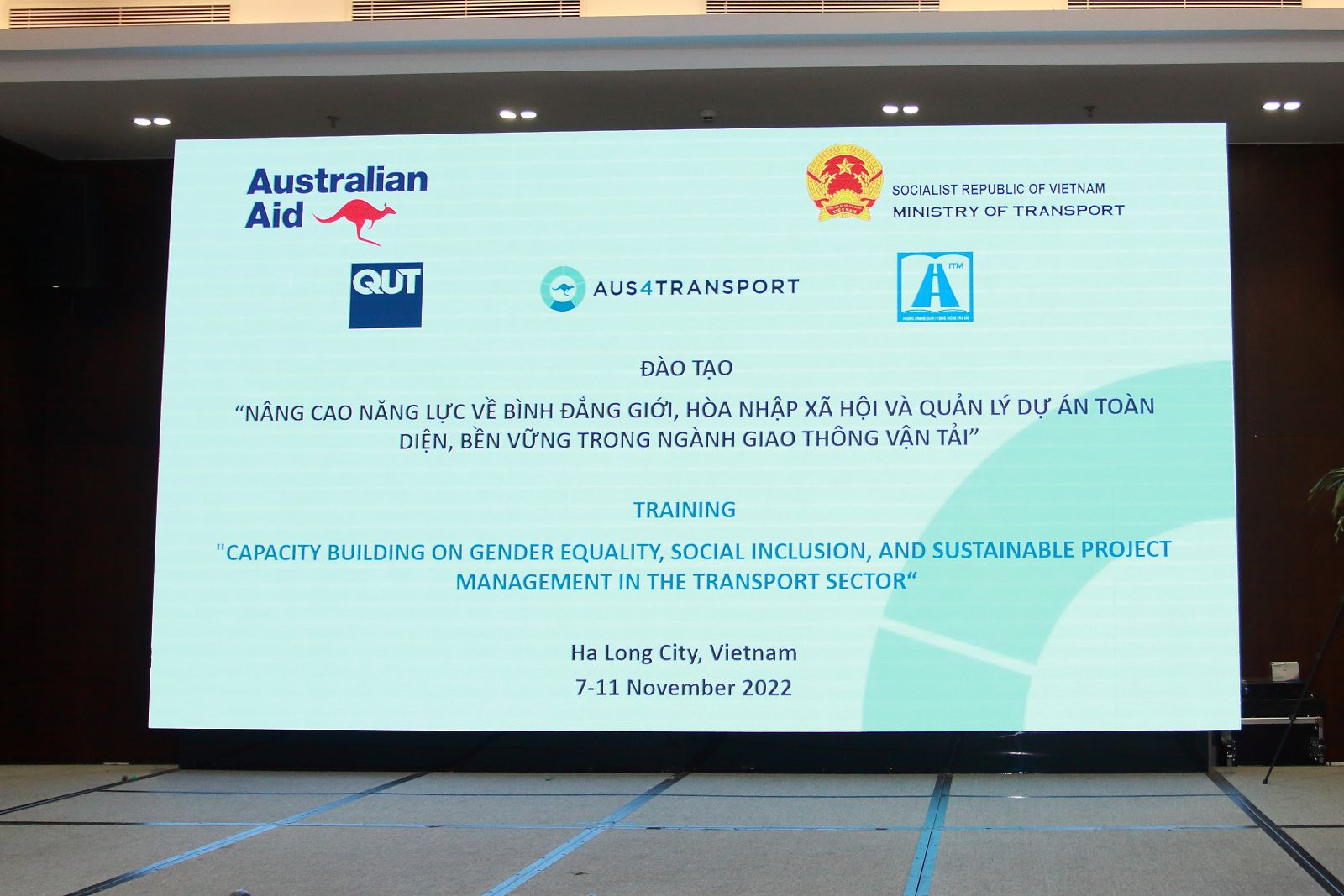 Ngày 07 tháng 11 năm 2022, tại Trung tâm hội nghị quốc tế FLC Hạ Long – Quảng Ninh, Tư vấn chương trình Aus4transport, Trường Đại học Công nghệ Queensland (Australia) và Trường Cán bộ quản lý giao thông vận tải phối hợp tổ chức khóa đào tạo Nâng cao năng lực về giới, hòa nhập xã hội và quản lý dự án toàn diện, bền vững trong ngành Giao thông vận tải.