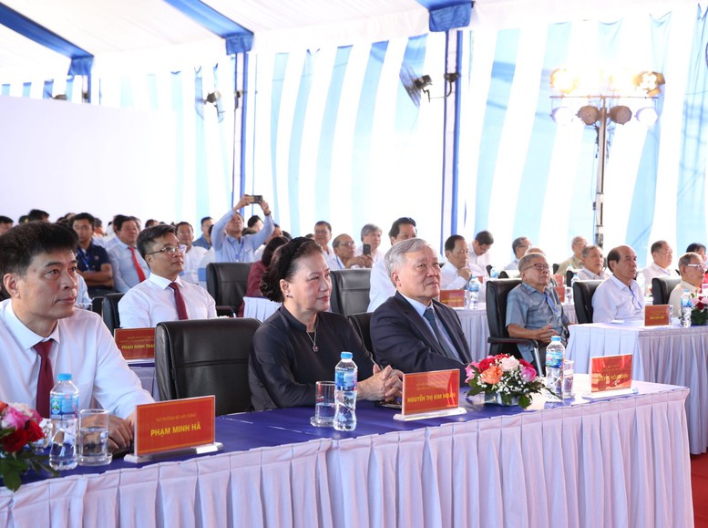 Nguyên Chủ tịch Quốc hội Nguyễn Thị Kim Ngân, Phó Thủ tướng Thường trực Chính phủ Nguyễn Hòa Bình dự lễ khánh thành dự án cầu Rạch Miễu 2 vượt sông Tiền nối Đồng Tháp với Vĩnh Long - Ảnh: VGP/Nguyễn Hoàng.