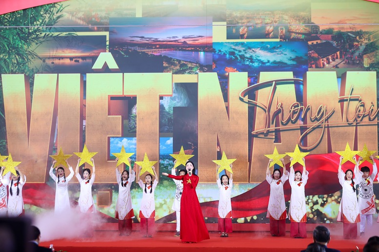 Tiết mục văn nghệ chào mừng tại điểm cầu trung tâm - Ảnh: VGP/Nhật Bắc.