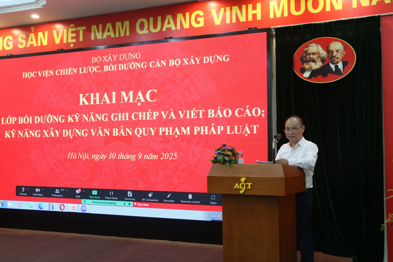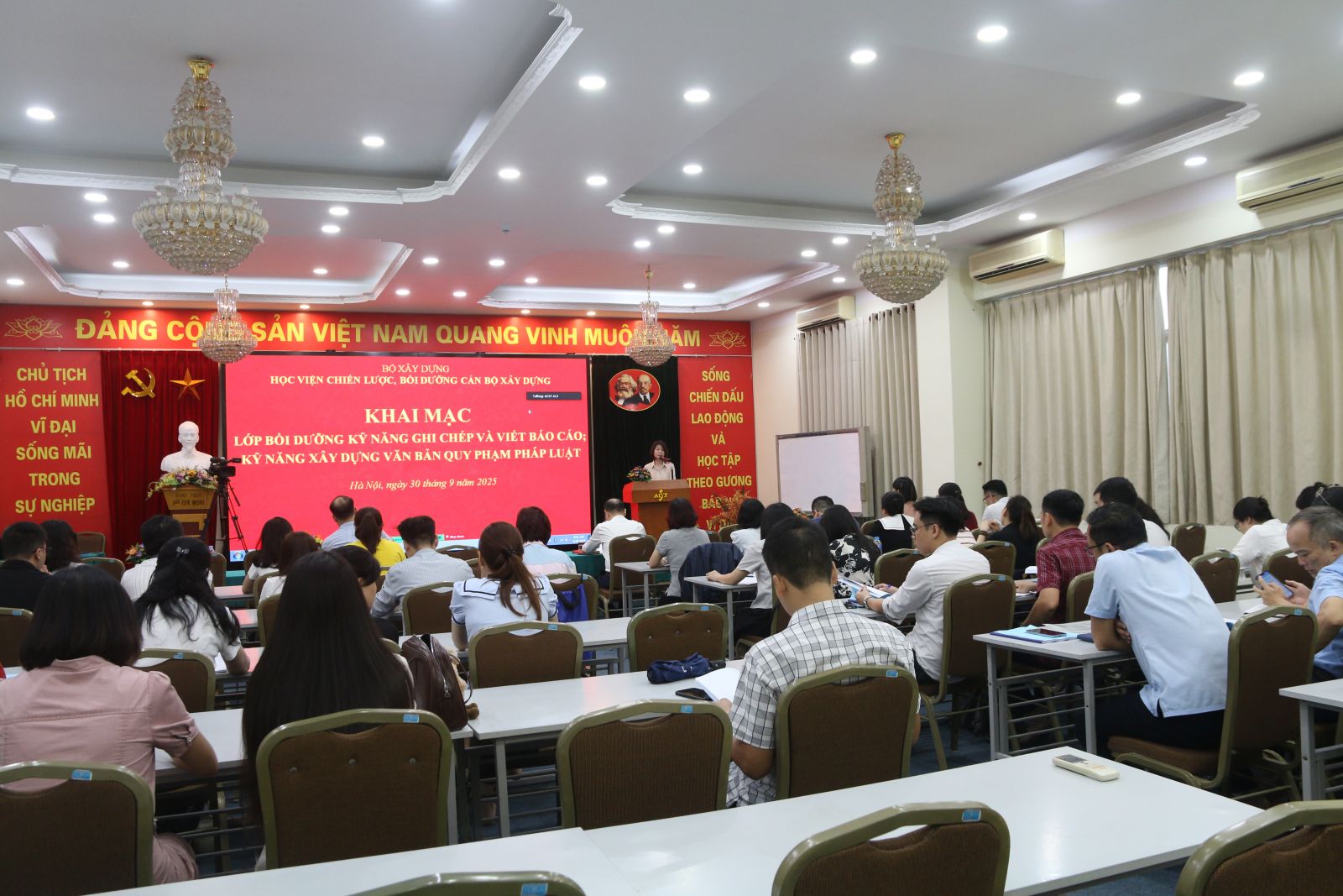 Ngày 30/9, Học viện Chiến lược, bồi dưỡng cán bộ xây dựng khai giảng khóa bồi dưỡng kỹ năng ghi chép, viết báo cáo và xây dựng văn bản pháp luật, nhằm nâng cao năng lực thực thi công vụ cho đội ngũ cán bộ ngành Xây dựng.