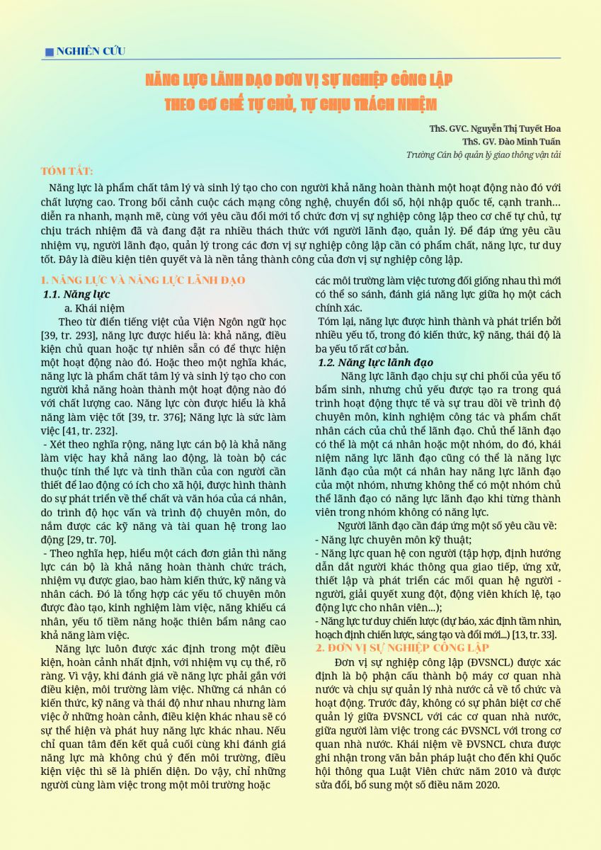 Năng lực lãnh đạo đơn vị sự nghiệp công lập theo cơ chế tự chủ, tự chịu trách nhiệm 26/08/2024 Lượt truy cập : 4333 Bình luận : 0 Chia sẻ : Thêm bình luận mới Bình luận của bạn đã được gửi thành công. Cảm ơn bạn! Làm mới Lỗi. Vui lòng thử lại Gửi bình luận