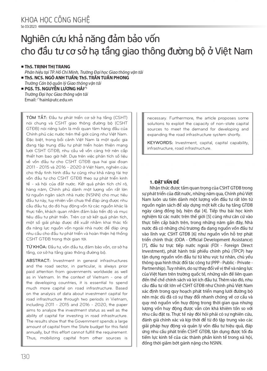 Nghiên cứu khả năng đảm bảo vốn cho Đầu tư cơ sở hạ tầng giao thông đường bộ ở Việt Nam 03/10/2023 Lượt truy cập : 978 Bình luận : 0 Chia sẻ : Thêm bình luận mới Bình luận của bạn đã được gửi thành công. Cảm ơn bạn! Làm mới Lỗi. Vui lòng thử lại Gửi bình luận