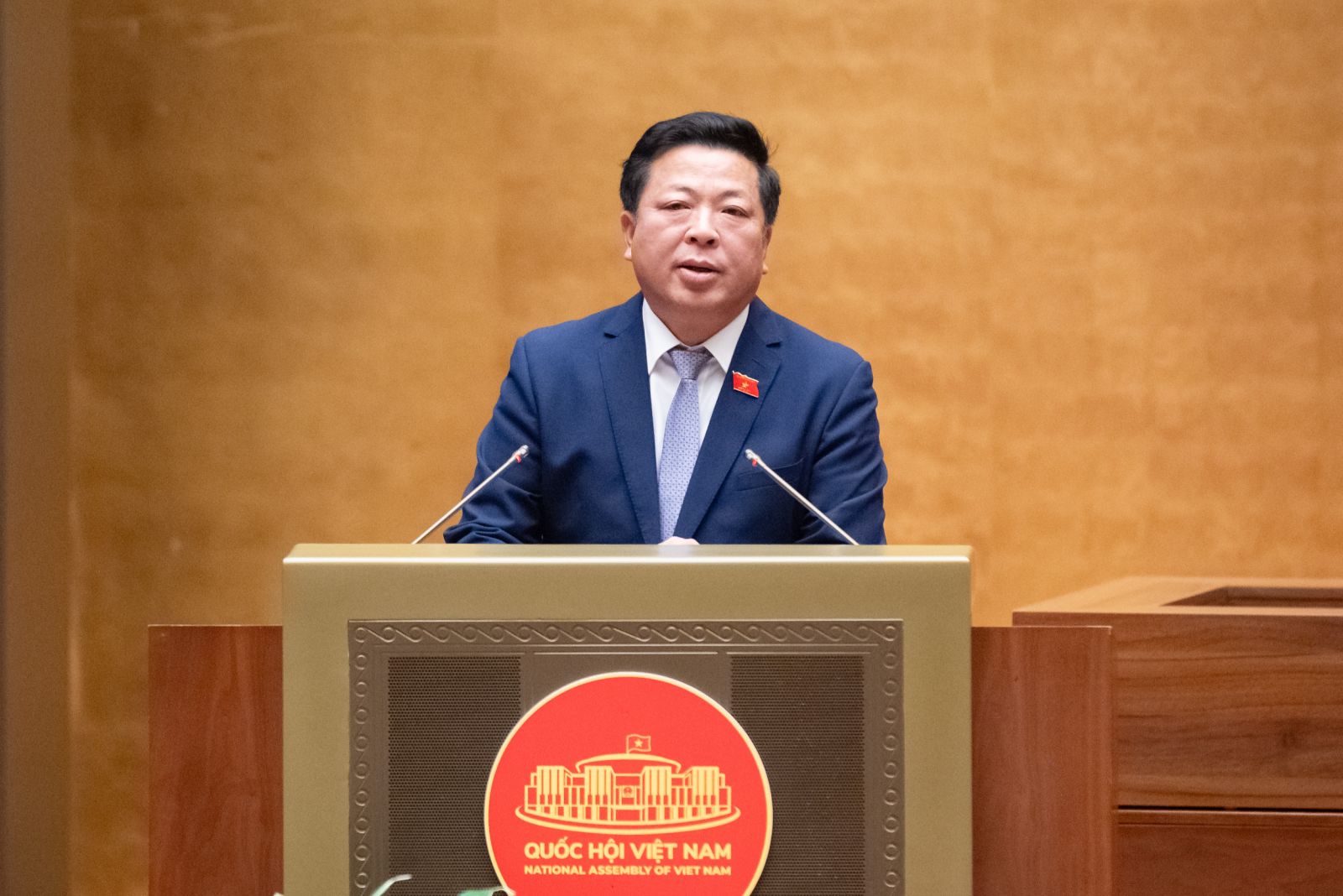 Bộ trưởng Bộ Xây dựng Trần Hồng Minh trình bày báo cáo tiếp thu, giải trình, chỉnh lý và hoàn thiện dự thảo luật trước khi các đại biểu bấm nút thông qua. Ảnh: Phạm Thắng.