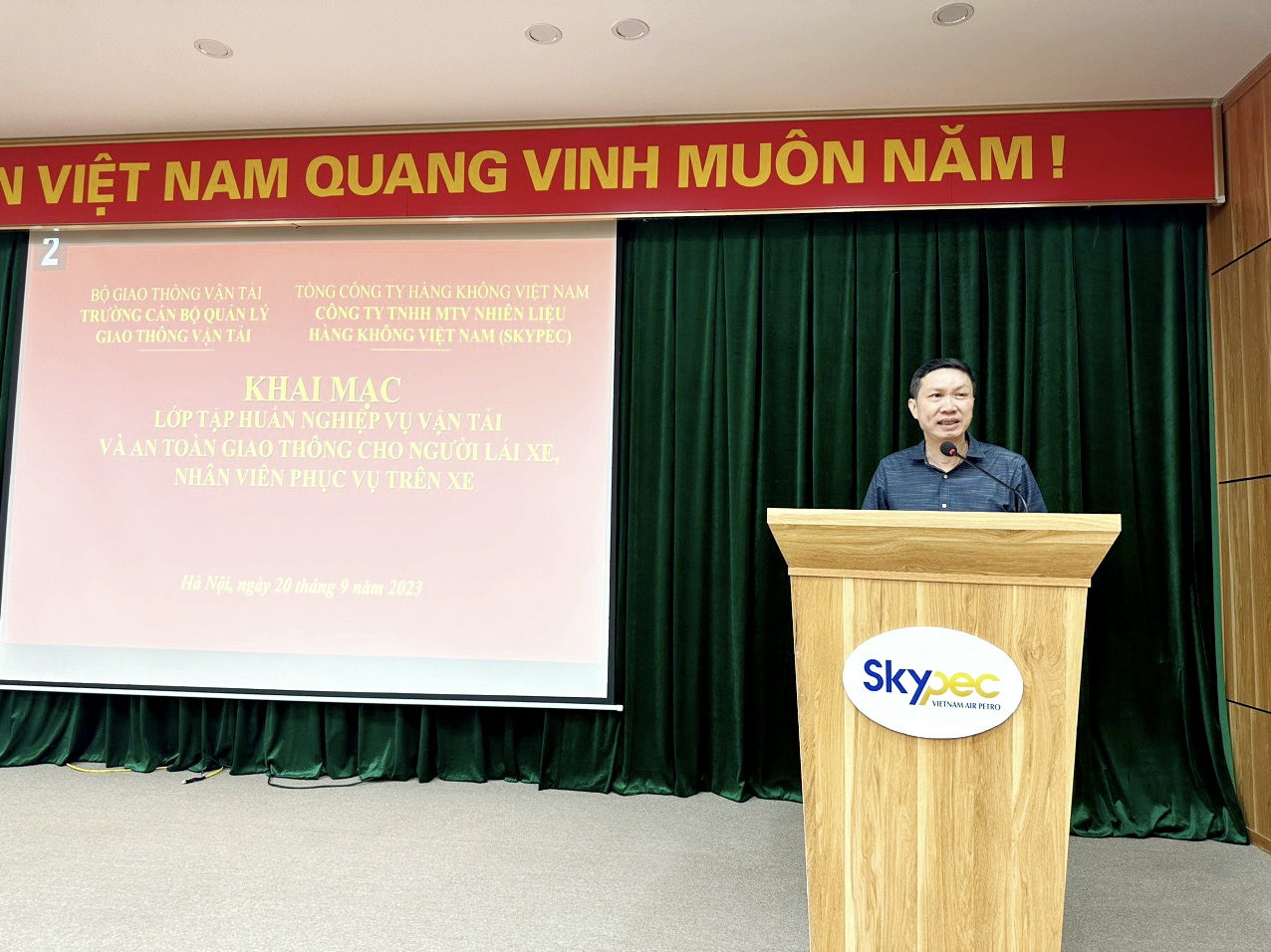 Ngày 20/9/2023, Trường Cán bộ quản lý giao thông vận tải phối hợp với Công ty TNHH MTV Nhiên liệu Hàng không (Skypec) tổ chức lớp Tập huấn nghiệp vụ vận tải và an toàn giao thông cho lái xe, nhân viên phục vụ trên xe. Tham dự lớp tập huấn có 117 học viên là lái xe và nhân viên phục vụ trên xe của Công ty TNHH MTV Nhiên liệu Hàng không (Skypec) thuộc Tổng công ty Hàng không Việt Nam (Vietnamairline).
