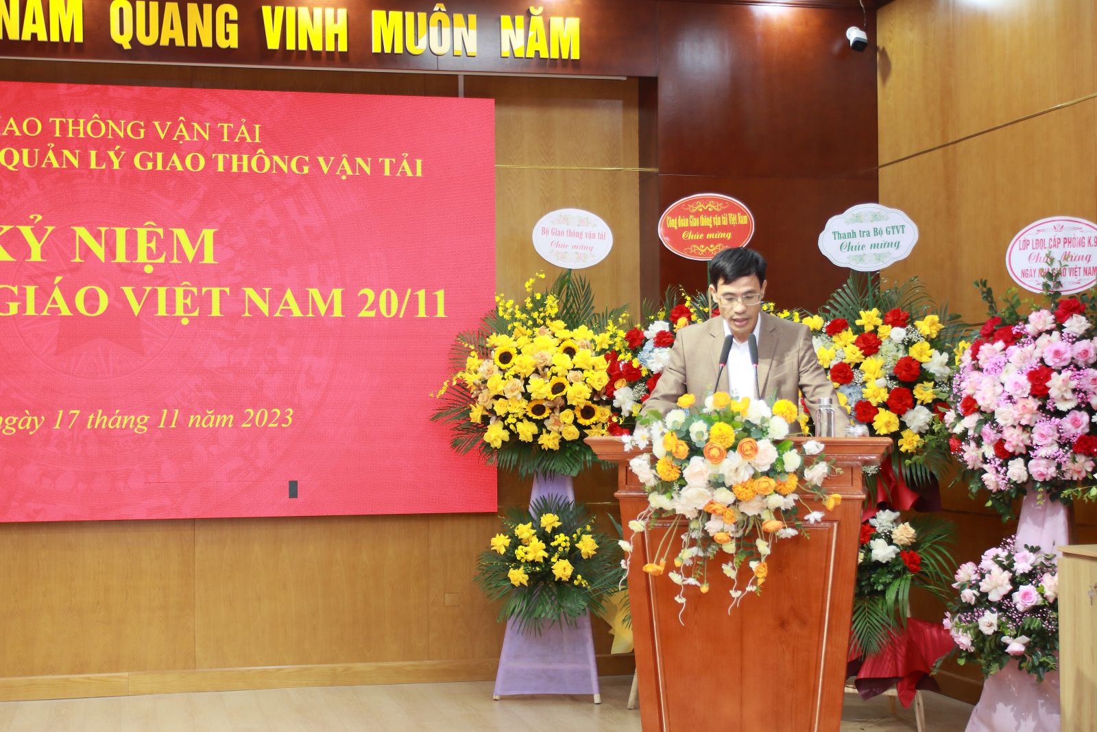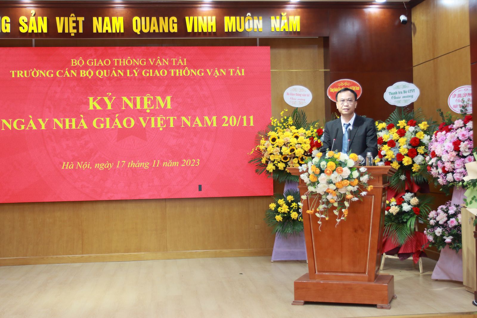 Tại chương trình kỷ niệm, đồng chí Ngô Anh Tuấn, Ủy viên BCH Đảng bộ Bộ Giao thông vận tải Bí thư Đảng ủy, Hiệu trưởng Trường Cán bộ quản lý giao thông vận tải đã trình bày diễn văn Kỷ niệm 41 năm ngày Nhà giáo Việt Nam, Trường Cán bộ quản lý giao thông vận tải đã gắn liền với tiến trình xây dựng và phát triển ngành Giao thông vận tải và đất nước, đáp ứng yêu cầu nhiệm vụ của từng giai đoạn khác nhau, Trường đã nhiều lần thay đổi địa điểm, tên gọi, chức năng nhiệm vụ và cơ cấu tổ chức. Mỗi giai đoạn đều có những khó khăn, thử thách nhất định, vượt lên trên những khó khăn thử thách đó, Trường luôn hoàn thành tốt nhiệm vụ Bộ Giao thông vận tải giao. Triển khai đào tạo, bồi dưỡng đội ngũ cán bộ, công chức, viên chức của ngành, cung cấp nguồn nhân lực có chất lượng phục vụ công cuộc công nghiệp hóa, hiện đại hóa đất nước. Trường đã triển khai đào tạo, bồi dưỡng cán bộ lãnh đạo quản lý, công chức, viên chức của ngành, với trên 40 chương trình đào tạo, bồi dưỡng; Góp phần quan trọng vào việc chuẩn hóa, trang bị, cập nhật kiến thức cho cán bộ, công chức, viên chức ngành Giao thông vận tải.
