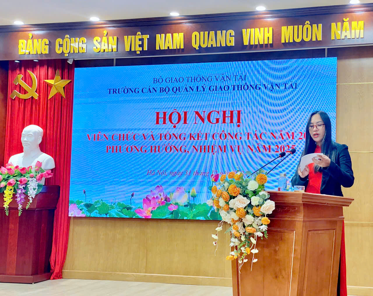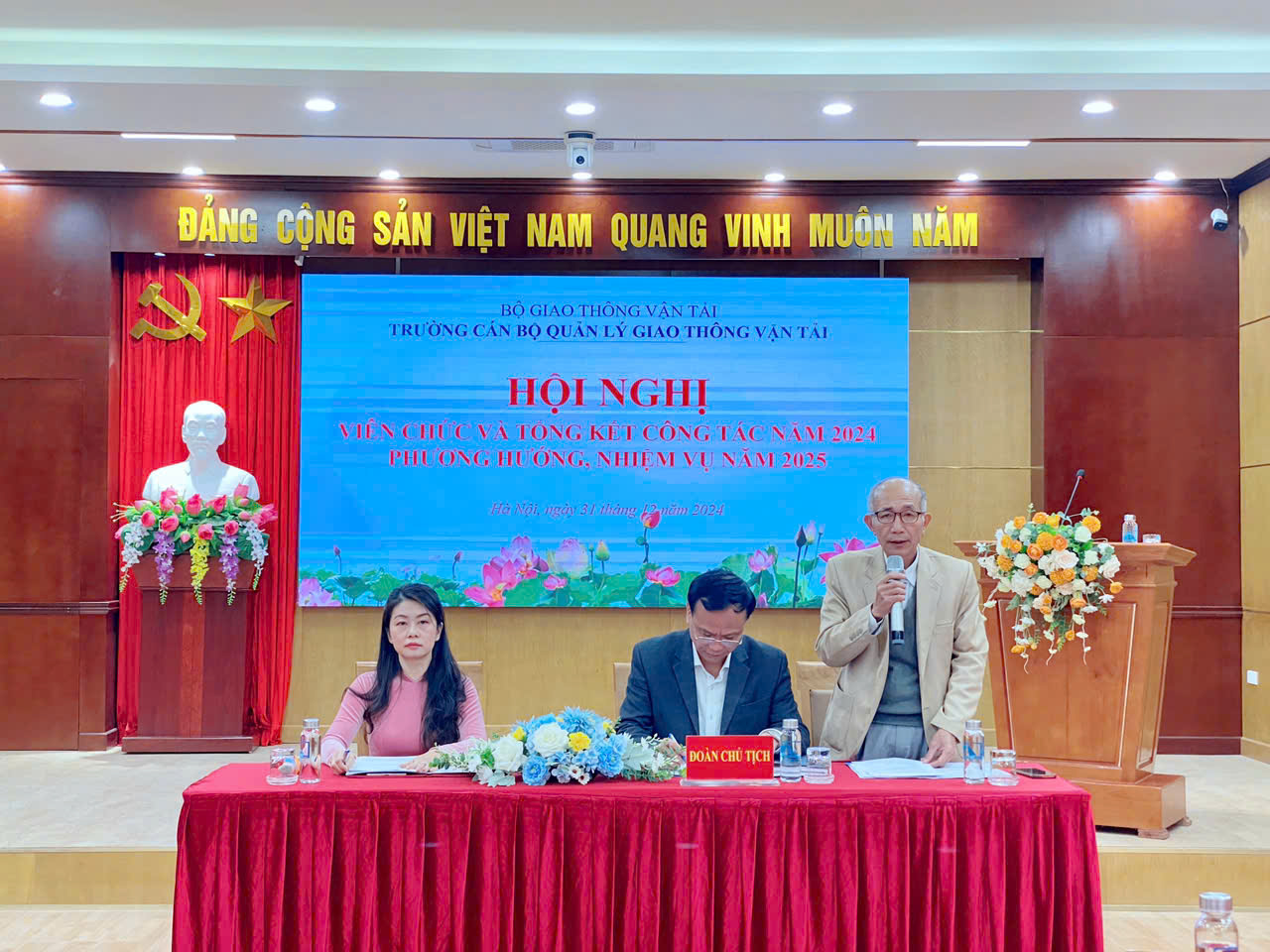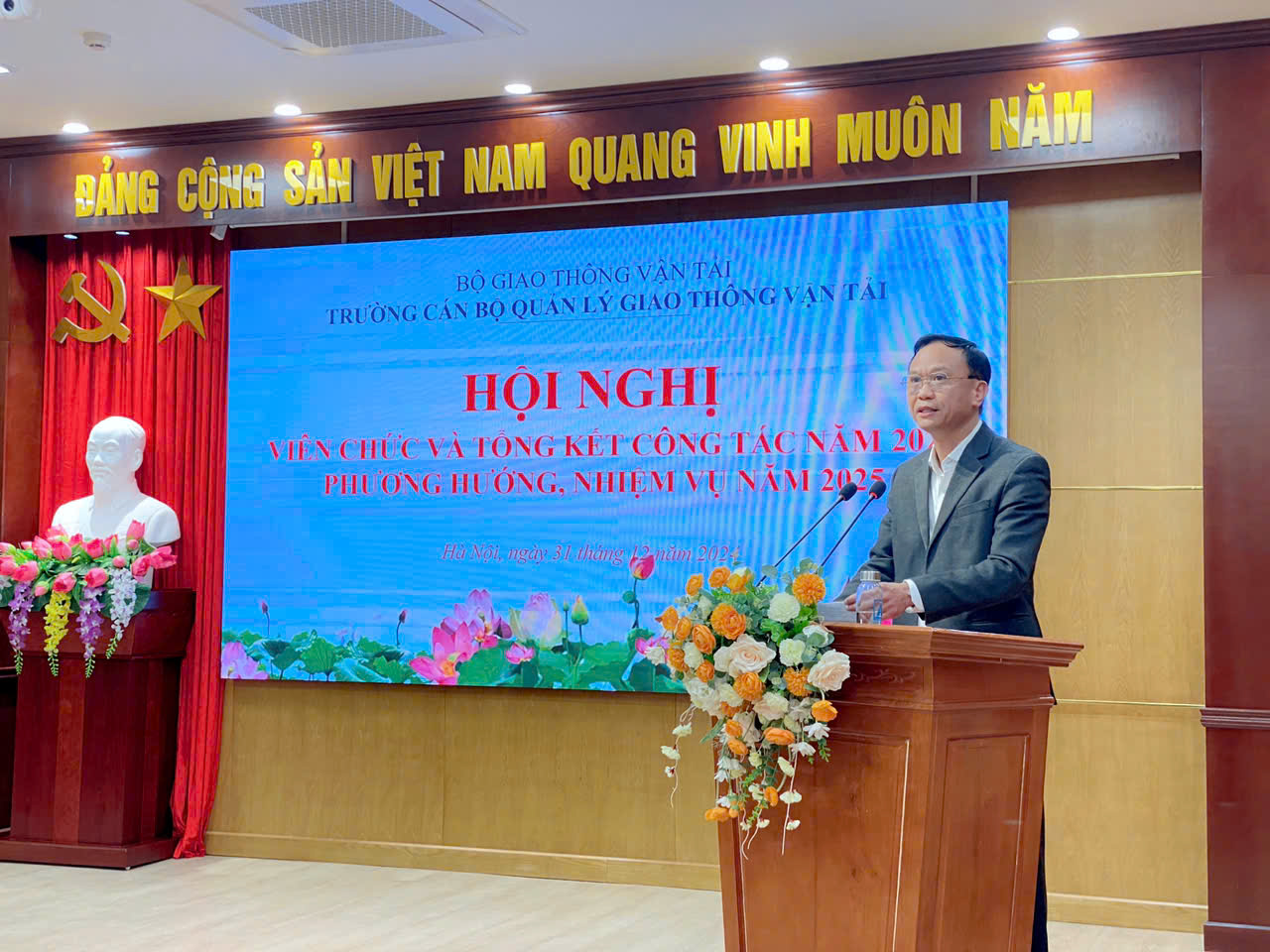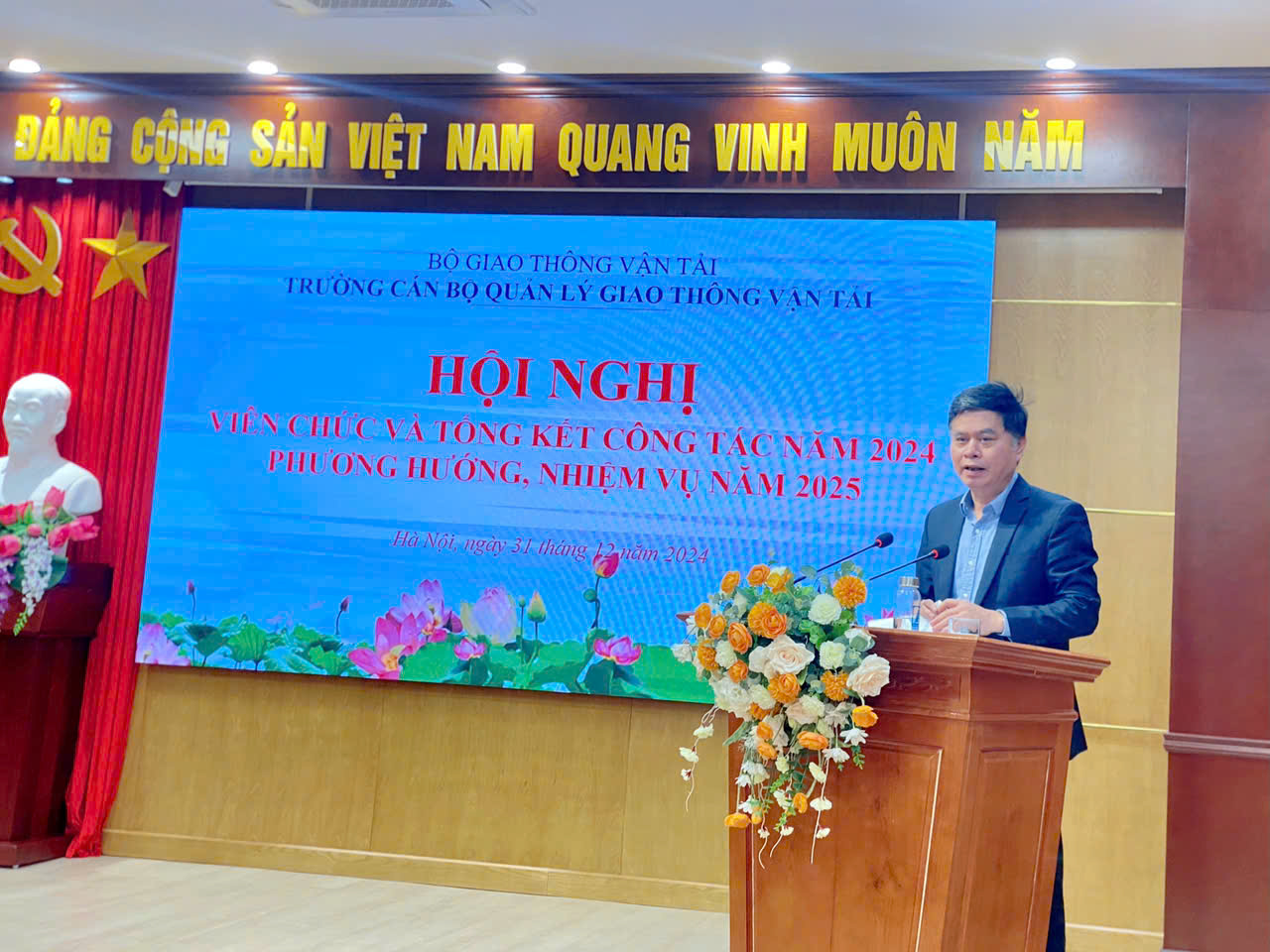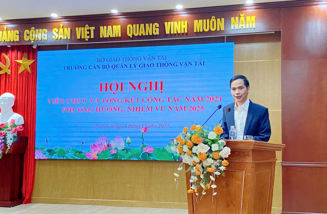 Ngày 31/12/2024, Trường Cán bộ quản lý giao thông vận tải đã tổ chức Hội nghị viên chức và Tổng kết công tác năm 2024, phương hướng nhiệm vụ năm 2025. Tham dự Hội nghị có Đ/c Đoàn Huy Khương, Ủy viên Ban Thường vụ Đảng ủy, Trưởng Ban tổ chức Đảng ủy Bộ GTVT; Đ/c Nguyễn Văn Nghĩa, Phó Vụ trưởng, Vụ Tổ chức cán bộ, Bộ GTVT; Đ/c Quách Xuân Vinh, Phó Chủ tịch Công đoàn GTVT Việt Nam; cùng dự còn có các đồng chí là cán bộ, chuyên viên Đảng ủy Bộ GTVT, Vụ Tổ chức cán bộ và Công đoàn GTVT Việt Nam; về phía Trường Cán bộ quản lý giao thông vận tải có Đ/c Ngô Anh Tuấn, Ủy viên Ban chấp hành Đảng bộ Bộ Giao thông vận tải, Bí thư Đảng ủy, Hiệu trưởng Nhà trường; cùng dự còn có các đồng chí Phó Hiệu trưởng, các đ/c trong BCH Đảng bộ, lãnh đạo các đơn vị và toàn thể viên chức, người lao động Trường.