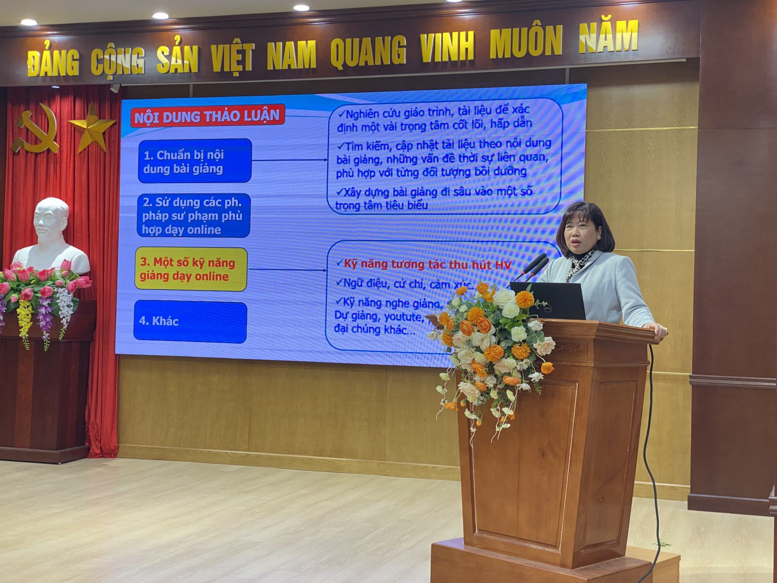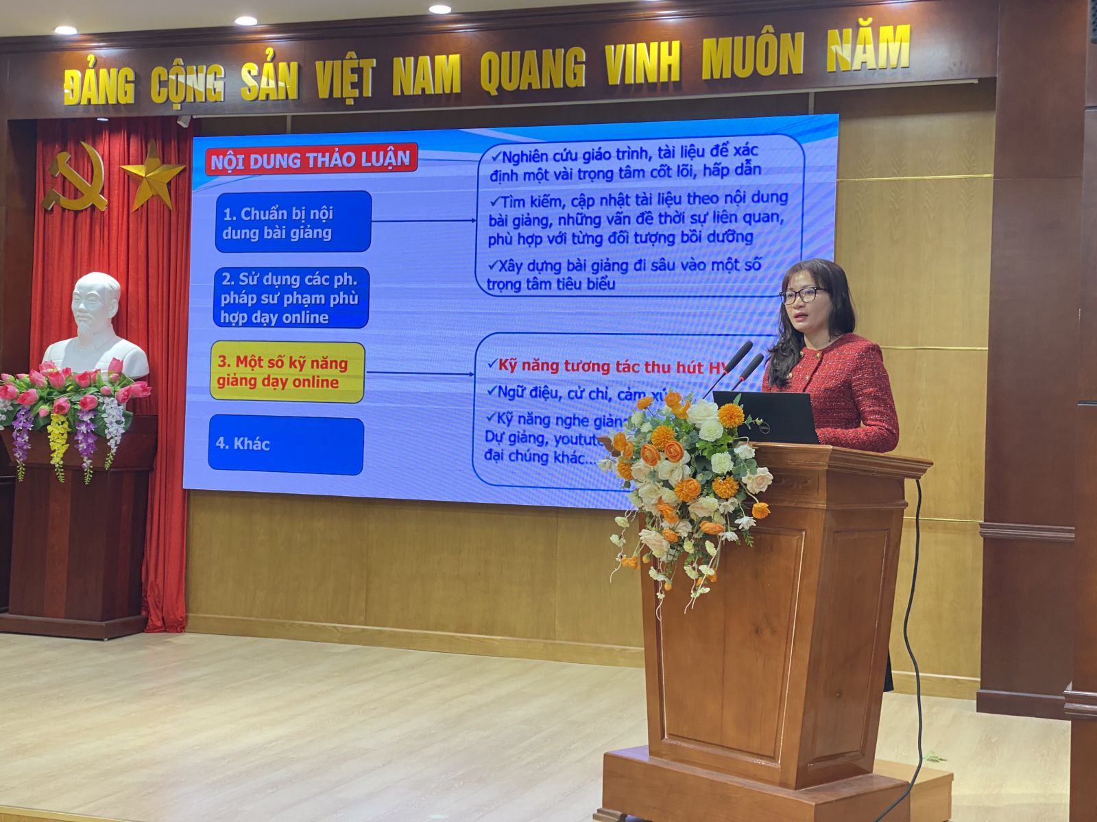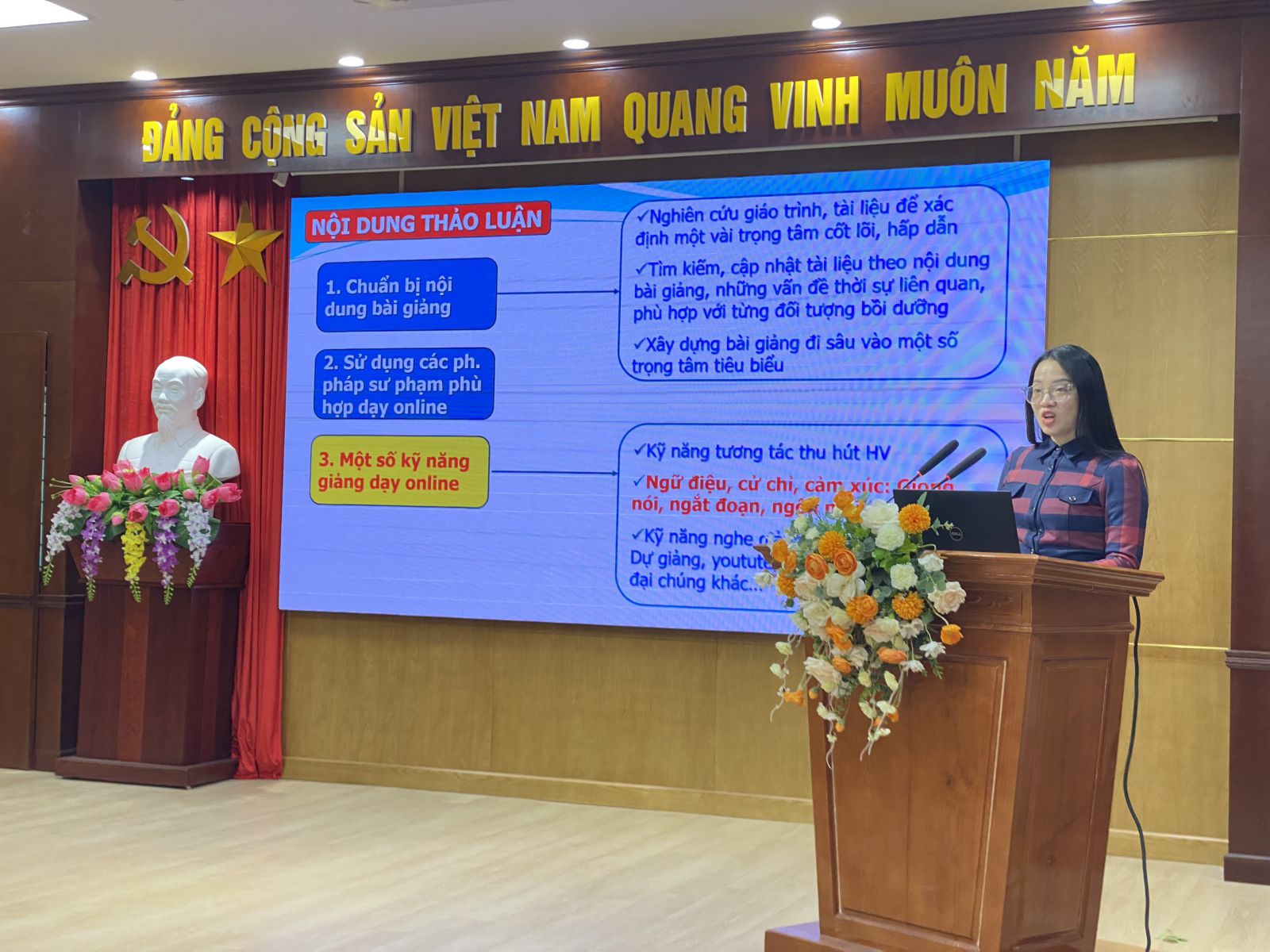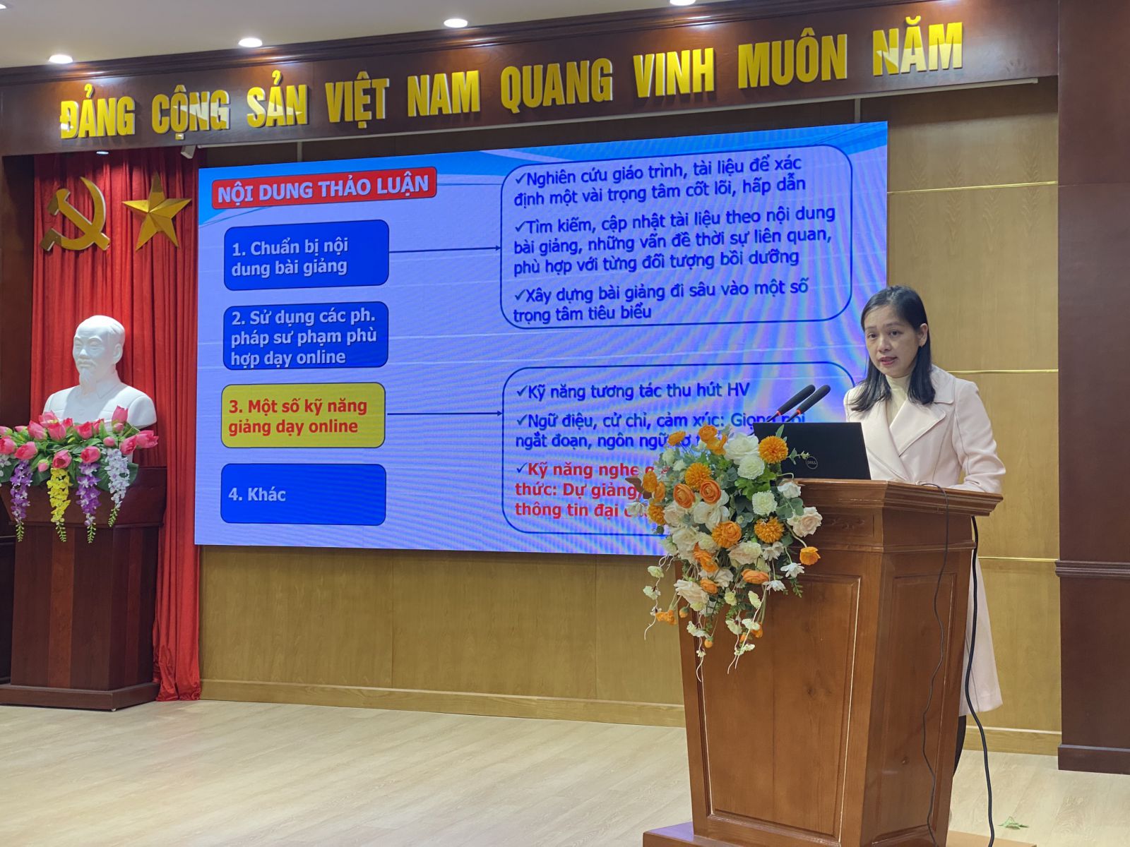Khai thác các phương pháp sư phạm hấp dẫn, phù hợp với giảng trực tuyến, người trình bày đ/c Nguyễn Thị Cẩm Vân, Khoa Bồi dưỡng chuyên ngành