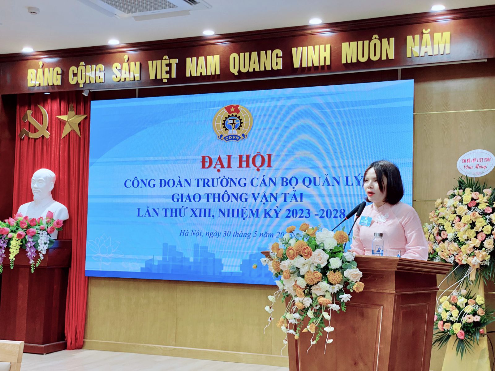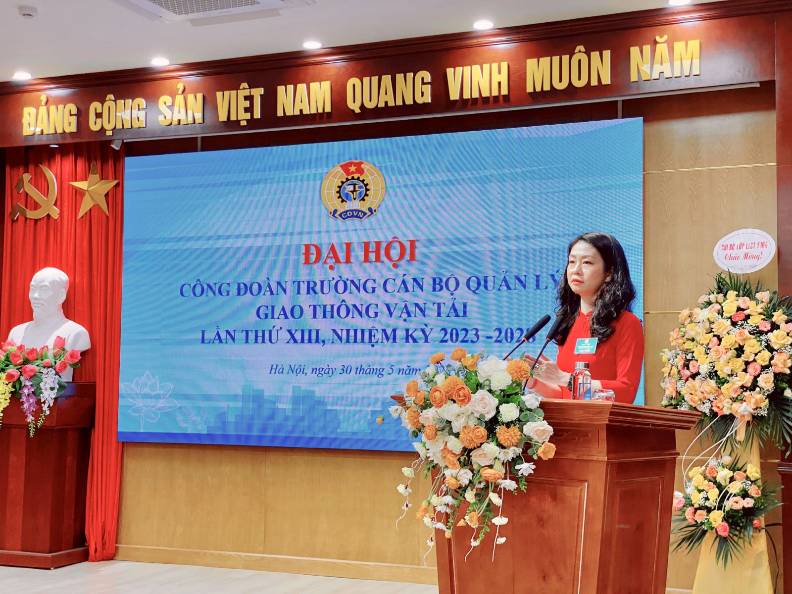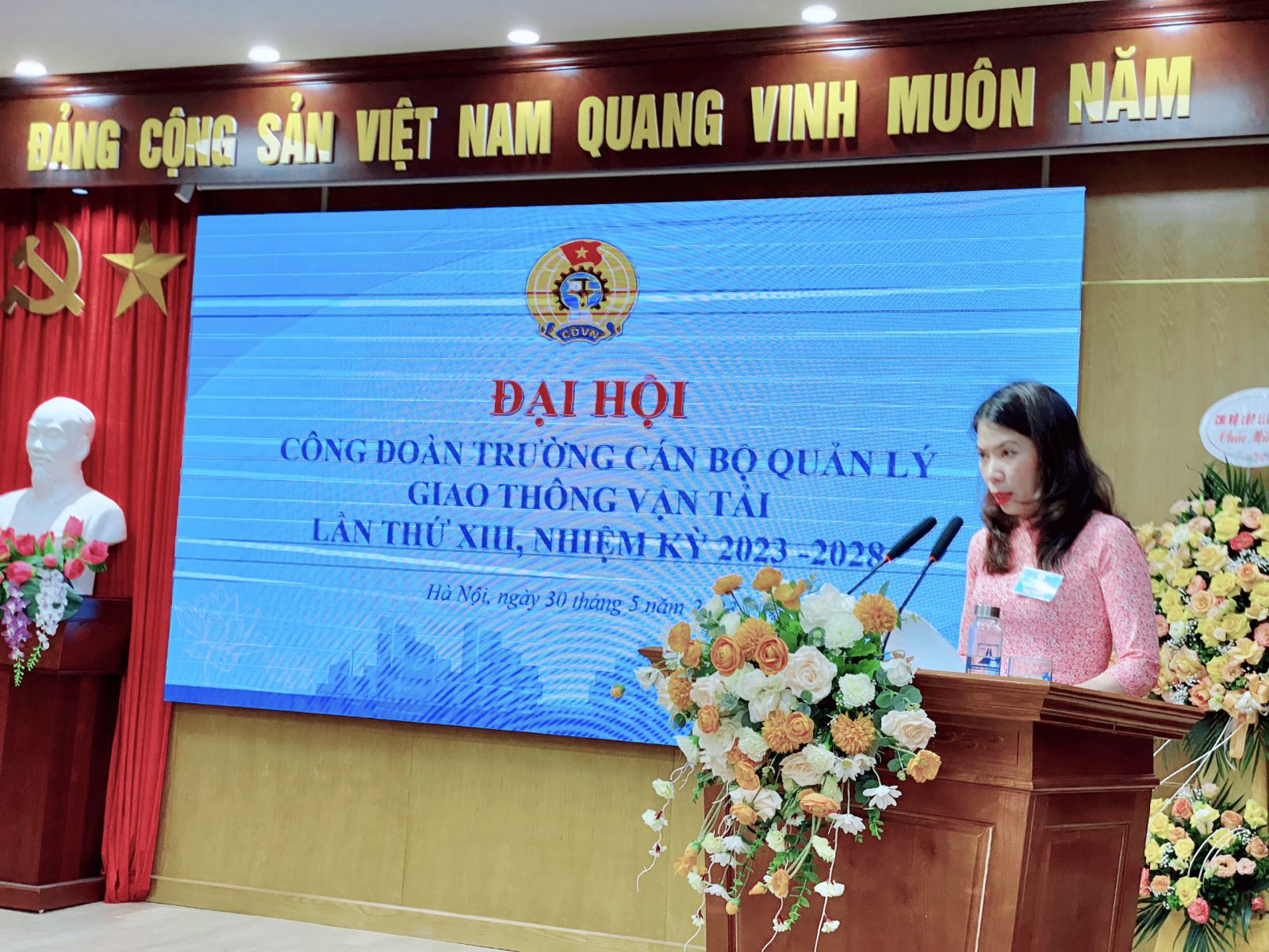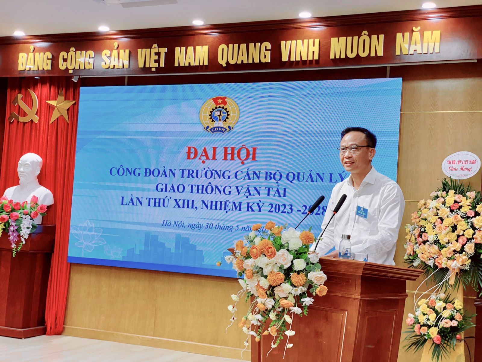 Thực hiện Điều lệ Công đoàn Việt Nam và Kế hoạch số 1059/KH-CĐN ngày 12/7/2022 của Công đoàn Giao thông vận tải Việt Nam về tổ chức Đại hội Công đoàn các cấp tiến tới Đại hội XI Công đoàn Giao thông vận tải Việt Nam, nhiệm kỳ 2023-2028, được sự đồng ý của Công đoàn Giao thông vận tải Việt Nam và sự chỉ đạo của Đảng ủy Trường, ngày 30/5/2023, Trường Cán bộ quản lý giao thông vận tải long trọng tổ chức Đại hội Công đoàn lần thứ XIII, nhiệm kỳ 2023 - 2028.