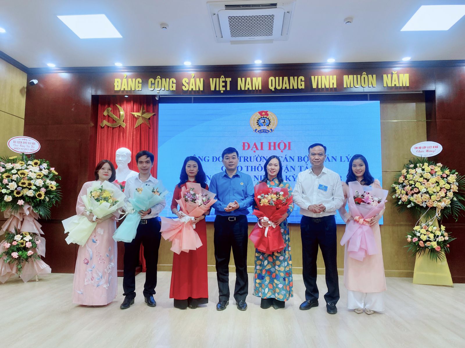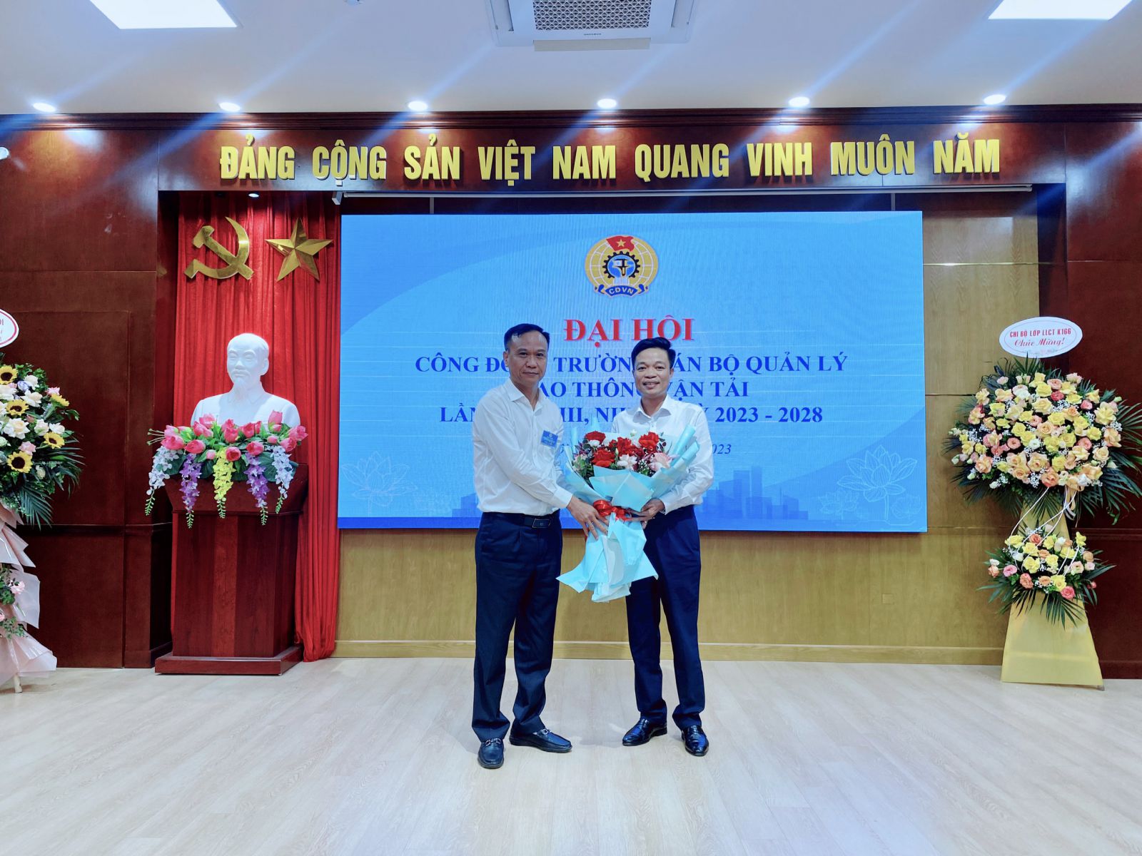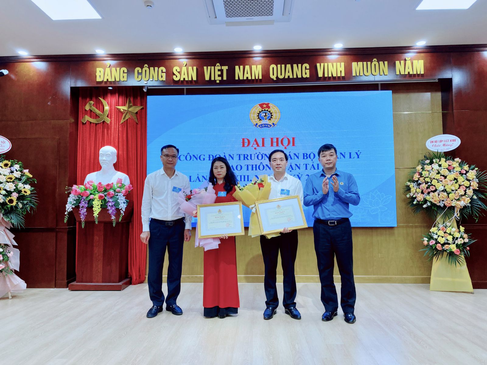 Lãnh đạo Công đoàn GTVT Việt Nam và Lãnh đạo Trường chúc mừng các đồng chí trúng cử vào BCH Công đoàn Trường lần thứ XIII, nhiệm kỳ 2023-2028